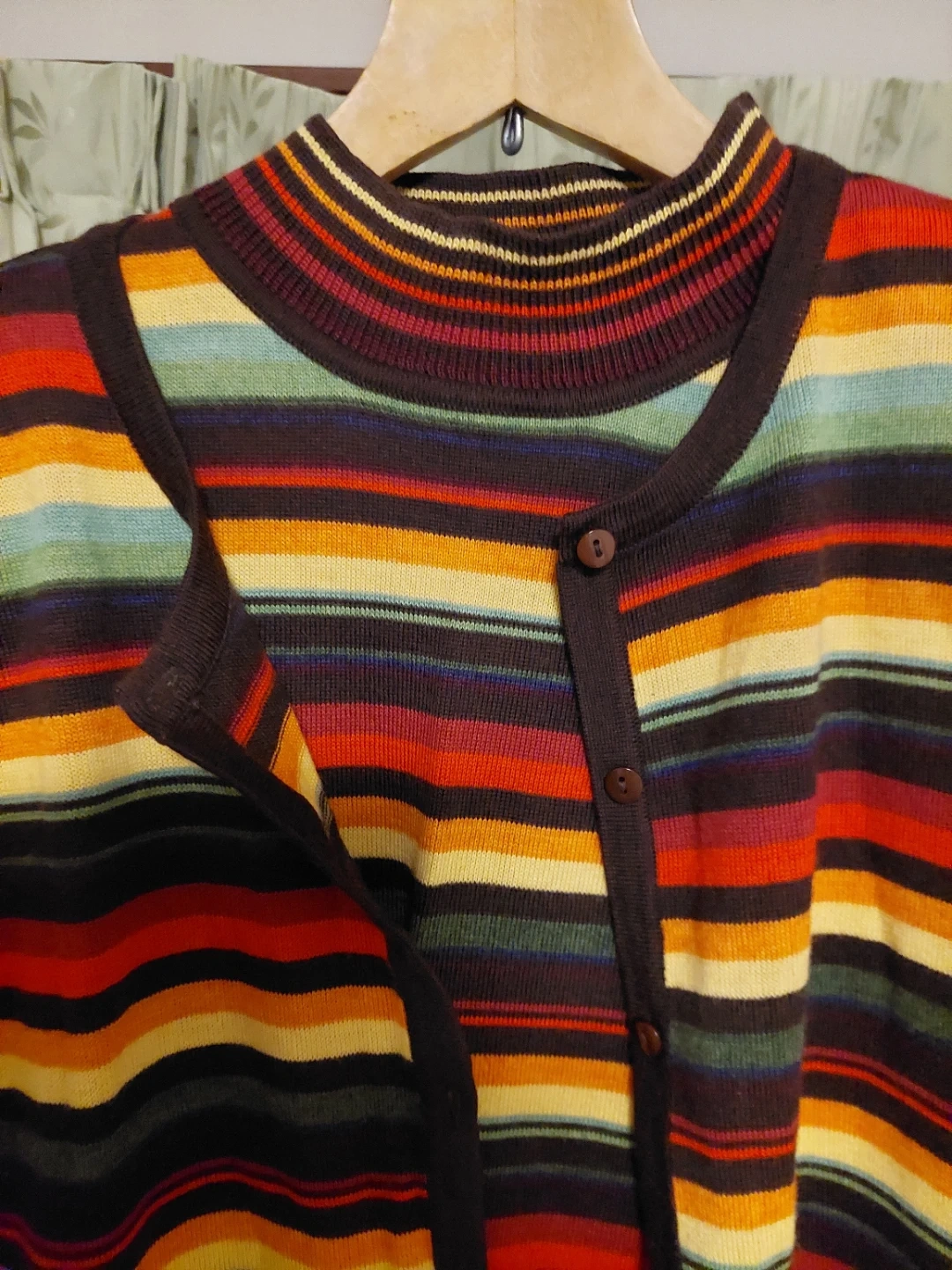 あたたかさ未使用品✨プラスリーブルのカーディガンとトップスのセット ・ブランド:プラスリーブル ・サイズ:L ・素材:毛50%、アクリル50% ・ストライプ柄 ・ボタン留め ・未使用タグなし 自宅保管しています。 気になる方はご遠慮ください。 受渡し後のクレームはご遠慮くださ い! 支払いは現金のみでお願いいたします。 申し訳ないですが夜は受渡しできません。 受け渡し場所はセブンイレブン白幡向町店ですが白幡池公園、白楽駅、大口公園、白幡地区センター、白幡仲町公園、仲手原のセブンイレブンでも可能です。 よろしくお願いいたします。