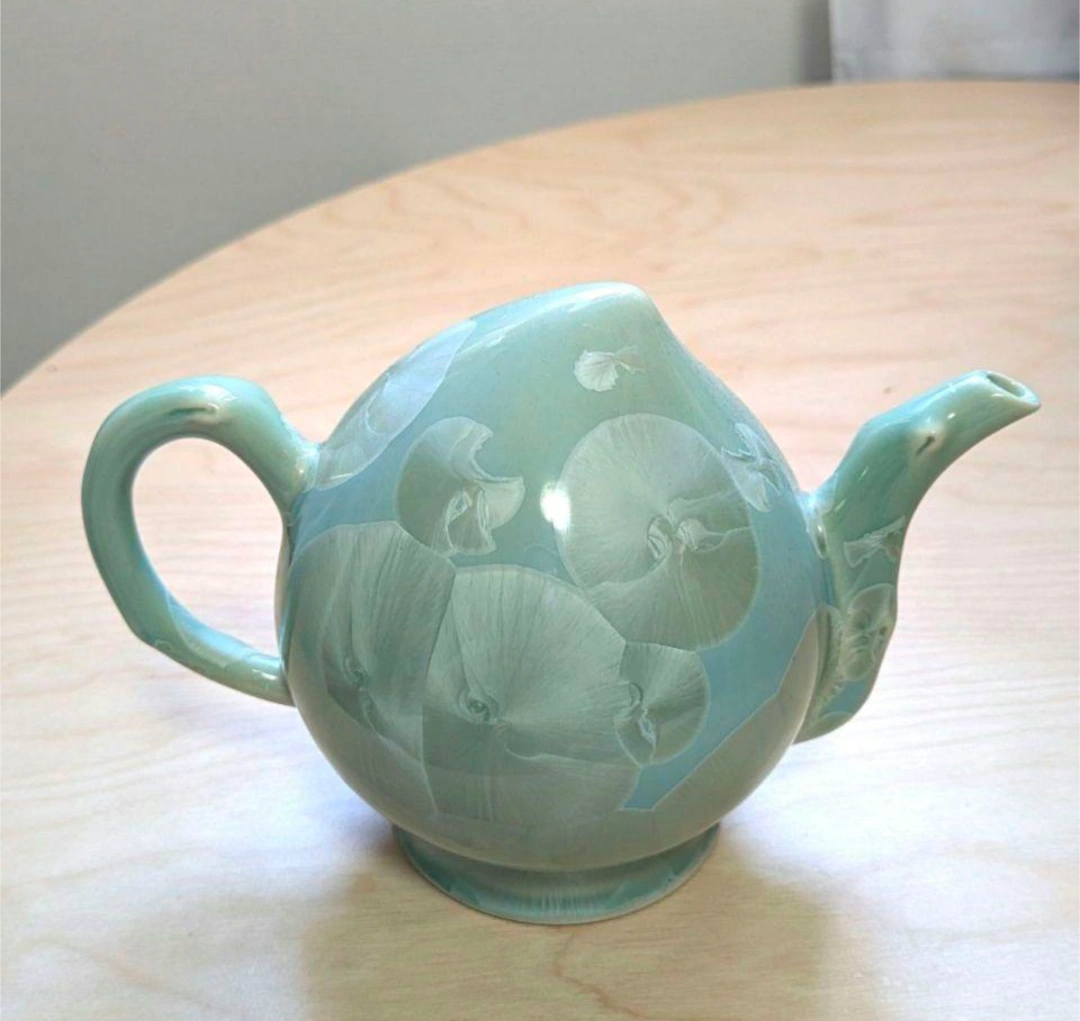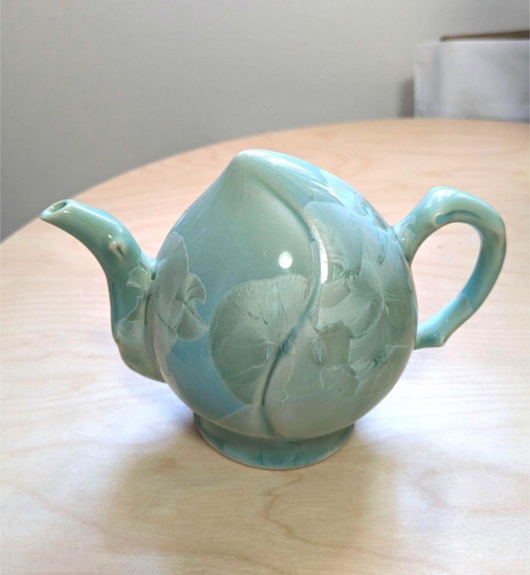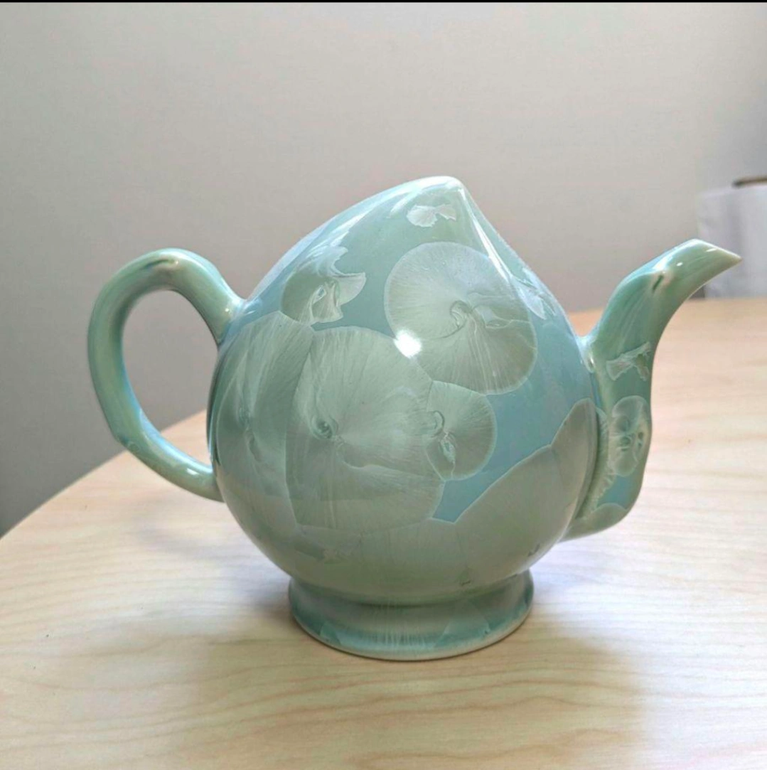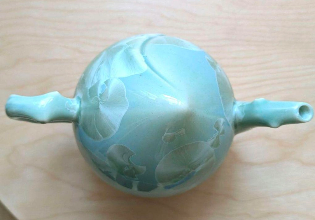 以前に台湾から個人輸入で9,000円程で購入しました。茶器としては全く使用せず、ディスプレイをして飾っていました。 お茶やお水などの飲料を底の注ぎ口から入れ、使用するものです。 自然のつや感とマーブル模様に優しいグリーンの 色がとてもすてきで、インテリアとして眺めては 癒やされていました。 サイズ 横17cm、縦12㎝、高さ13cm ※素人計測のため多少の誤差はご容赦ください。 未使用ですが底部分に経年変化による黒ずみが見られます。ご確認ください。
