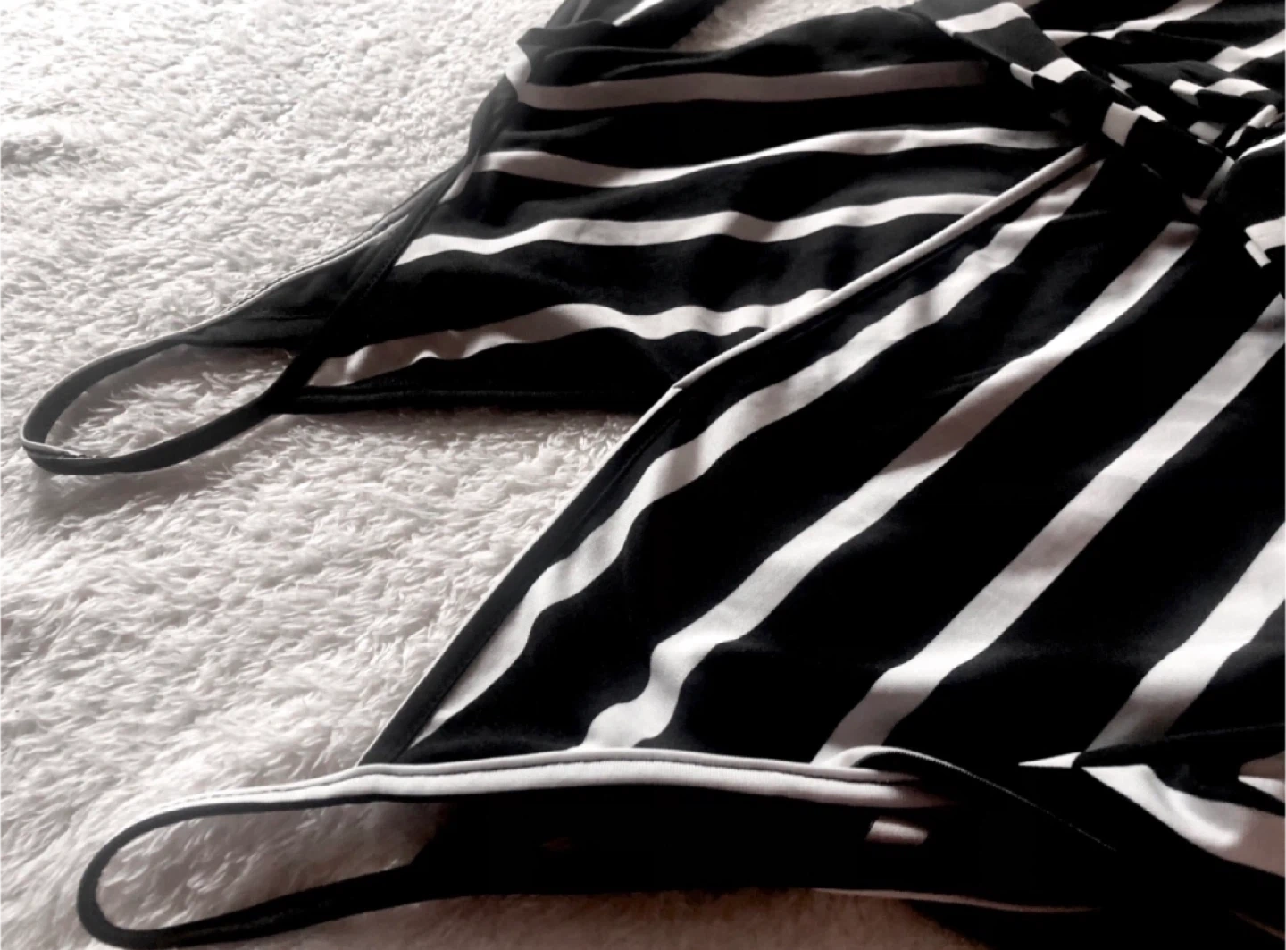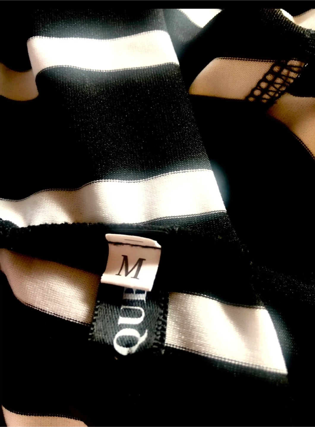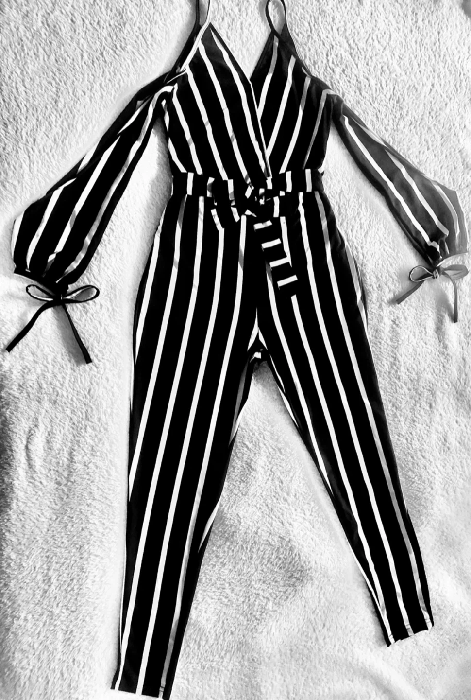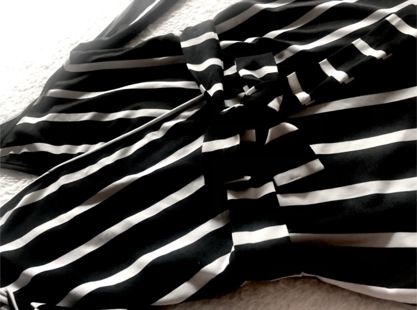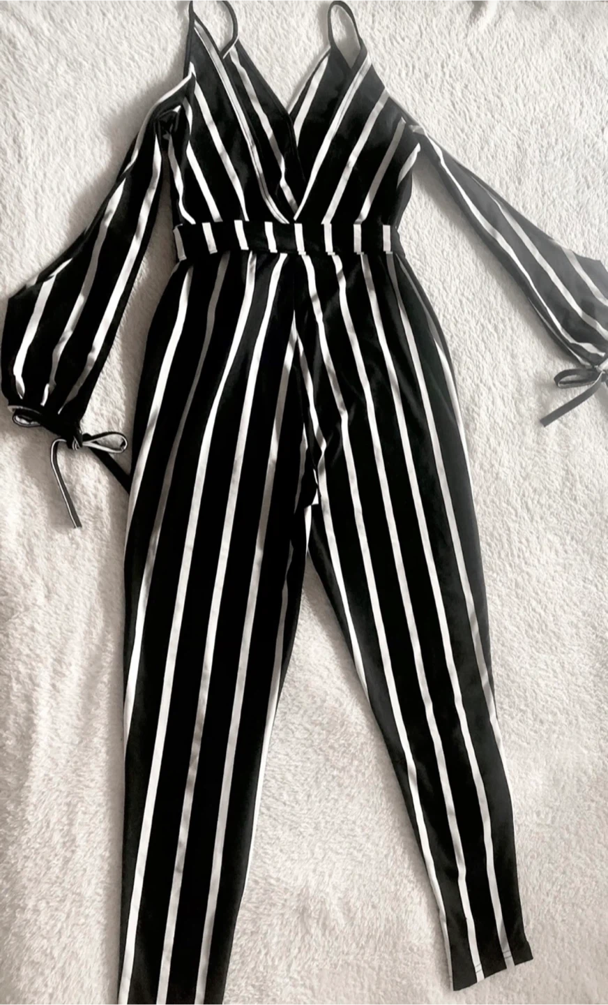 ストライプ柄のオールインワンです ・カラー:ブラック、ホワイト ・サイズ:M ・ストライプ柄 ・リボン付き 未使用、新品