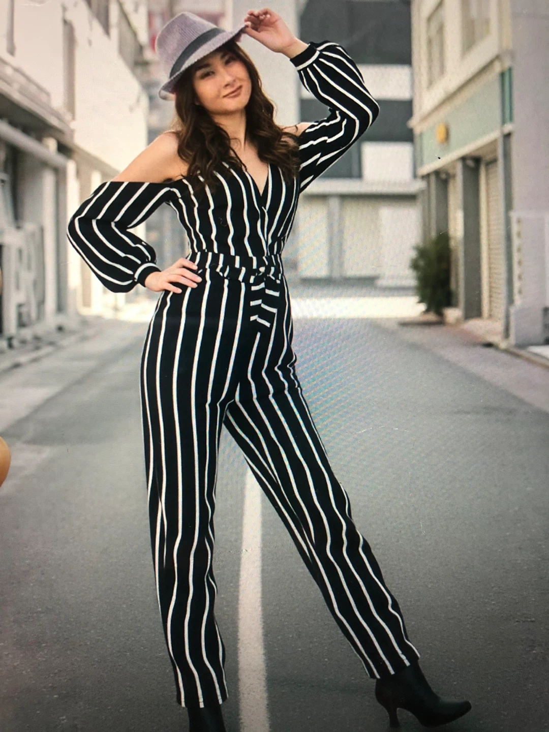 ❤️ 【未使用品】黒と白のストライプのフォーマル&パーティー用ジャンプスーツ