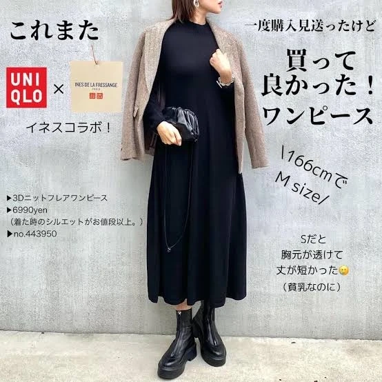 ユニクロの公式オンラインストアで星5つ満点中4.5と高評価だったニットワンピースです。 (参考価格:購入時定価 6,900円) 当時インスタやファッション雑誌などで相当話題で、ワインカラーは発売後すぐに完売してしまったため、お探しだった方もいらしたのではないでしょうか。 上半身はスッキリと、腰からはフレアのふわっと感のある、綺麗で上品なシルエットです。肉感などは感じさせず、ふんわりと身体のラインを拾ってくれるので、きれいで痩せて見えます。 ウール100%なので、質感が上品でまた暖かいので、ディナーなどのお出かけコーデにも活躍するかと思いました。 オフィス用にと購入しましたが、すぐに在宅勤務のポジションに転職してしまい、タグは切っているものの実質未使用できれいな状態ですので、ぜひお使いいただける方にお譲りできれば幸いです。 ※ディテールがわかりやすいように別カラーの画像も使っていますが、出品はワインカラーのみです。 以下、公式オンラインストアの紹介文より。 ・フレンチ・シックの代名詞、国際的トップモデル”イネス・ド・ラ・フレサンジュ”とのコラボレーションアイテム。 ・ウエスト部分の素材と編み地を切り替えることで、生地が伸びづらい。 ・ウエストにきれいに沿うフィットアンドフレアシルエット。 【カラー】ワイン 【サイズ】M 【素 材】ウール100% ※他のサイトでも出品しているため、そちらでご購入いただけた場合は急に削除することがあります。 取引場所は銀座駅周辺、新富町駅、もしくは築地駅周辺で可能です。駅の改札口のお取引も場合によって可能です。 洋服全般は実物を見てから決めていただいても構いません。お気軽にメッセージくださいませ✨️
