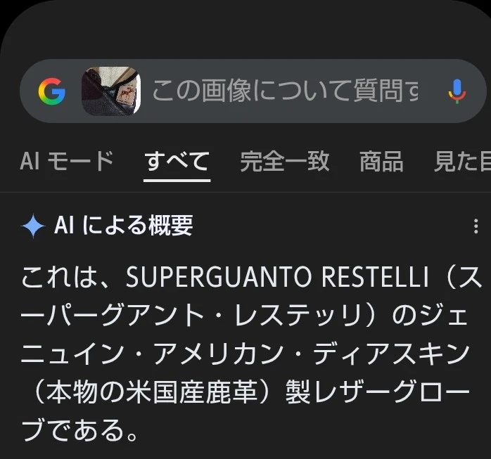 スーパーグアント・レスッテリのレザーグローブ 未使用 男性用 イタリア🇮🇹製 米国本鹿革使用手袋 サイズ81/2 内側はカシミアで、とても肌触り良く 暖かいです NCNR お取引きは休日平日ともに15時以降 でお願い致します 最初にご都合の良い日時をお知らせ 下さる方が効率的です※必須 基本的にはセブン-イレブン若林陸橋店でのお取引きを希望しますが 交通手段またどちら方面からいらっ しゃるかお知らせくださればご相談に のります