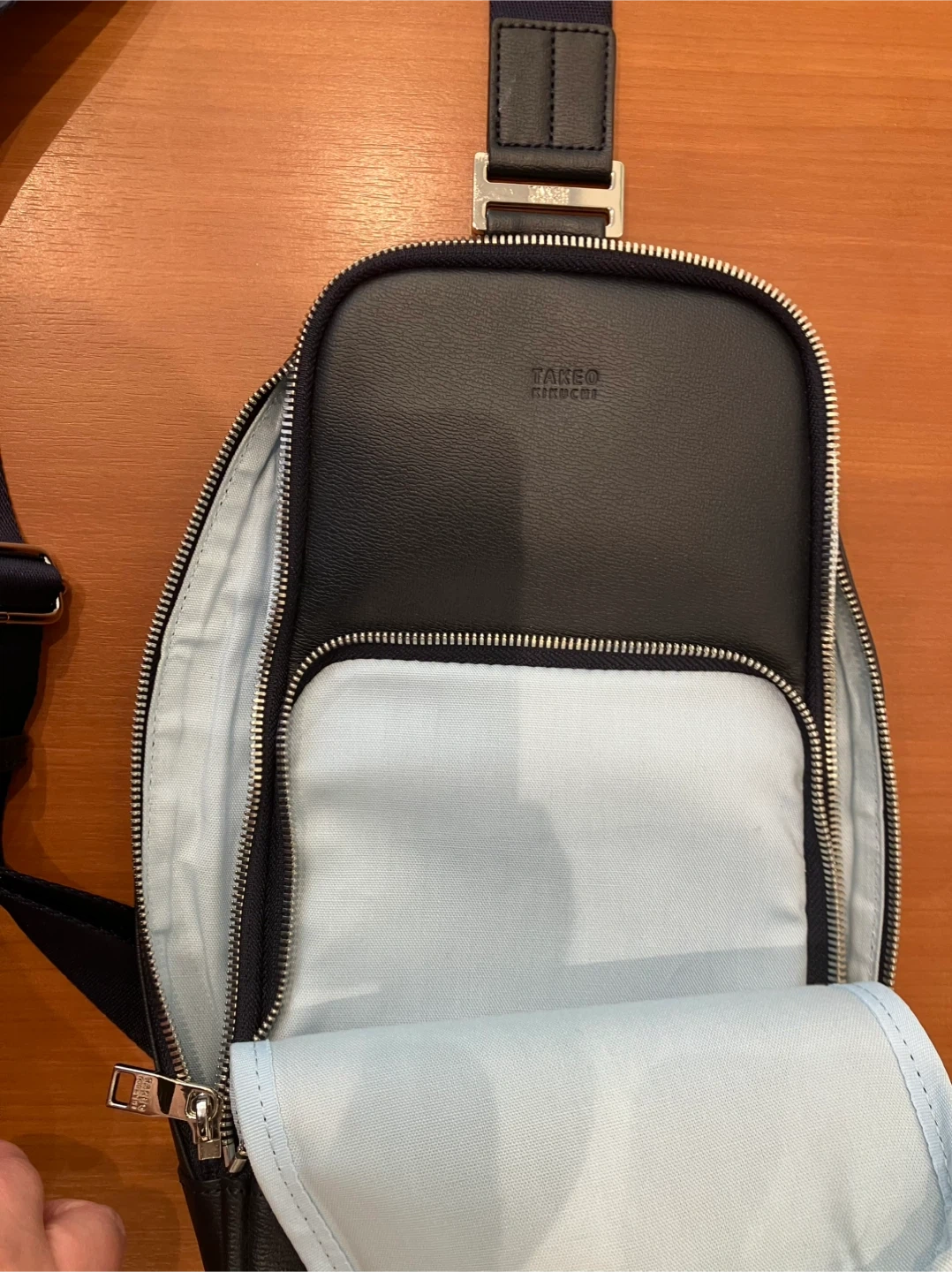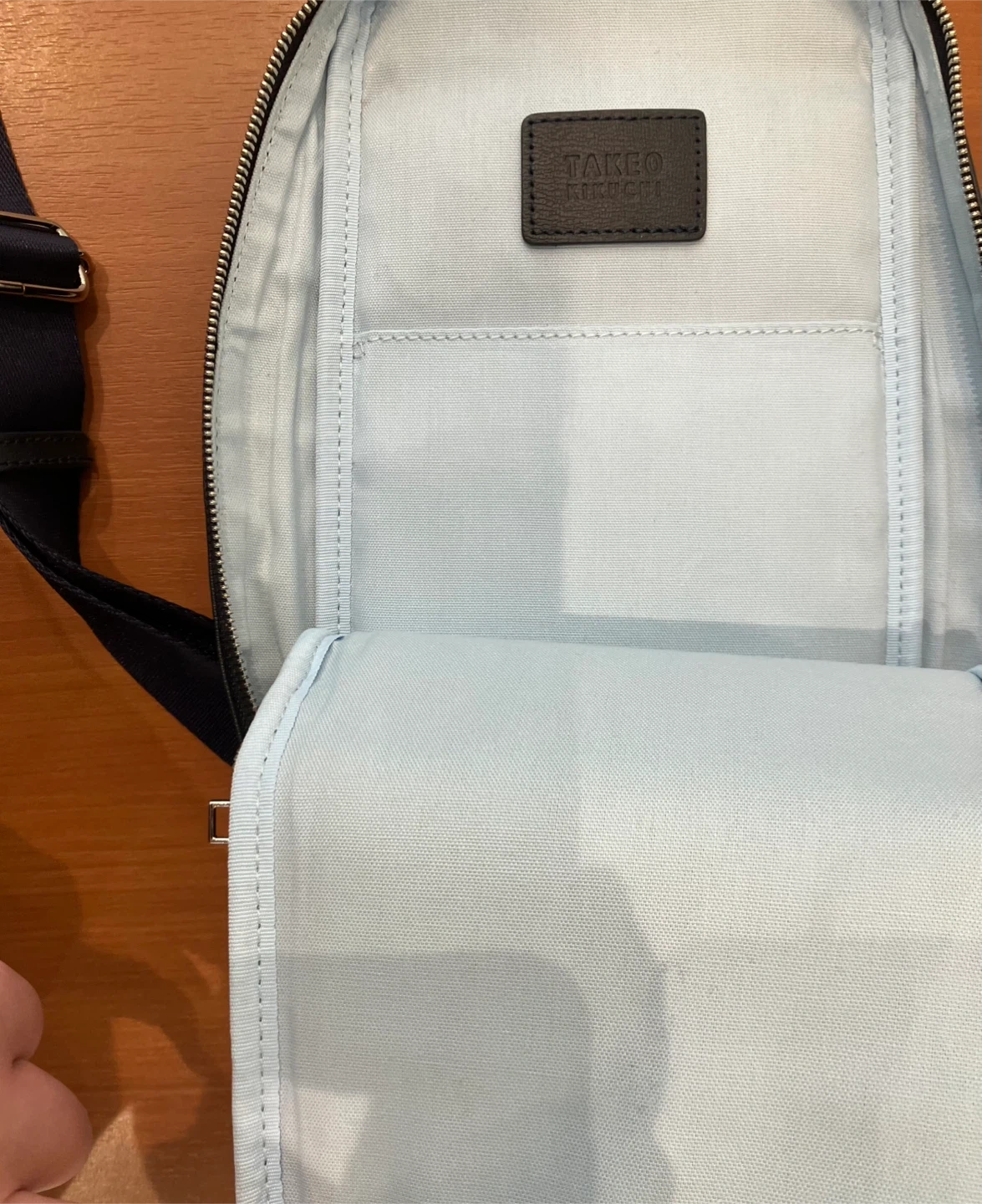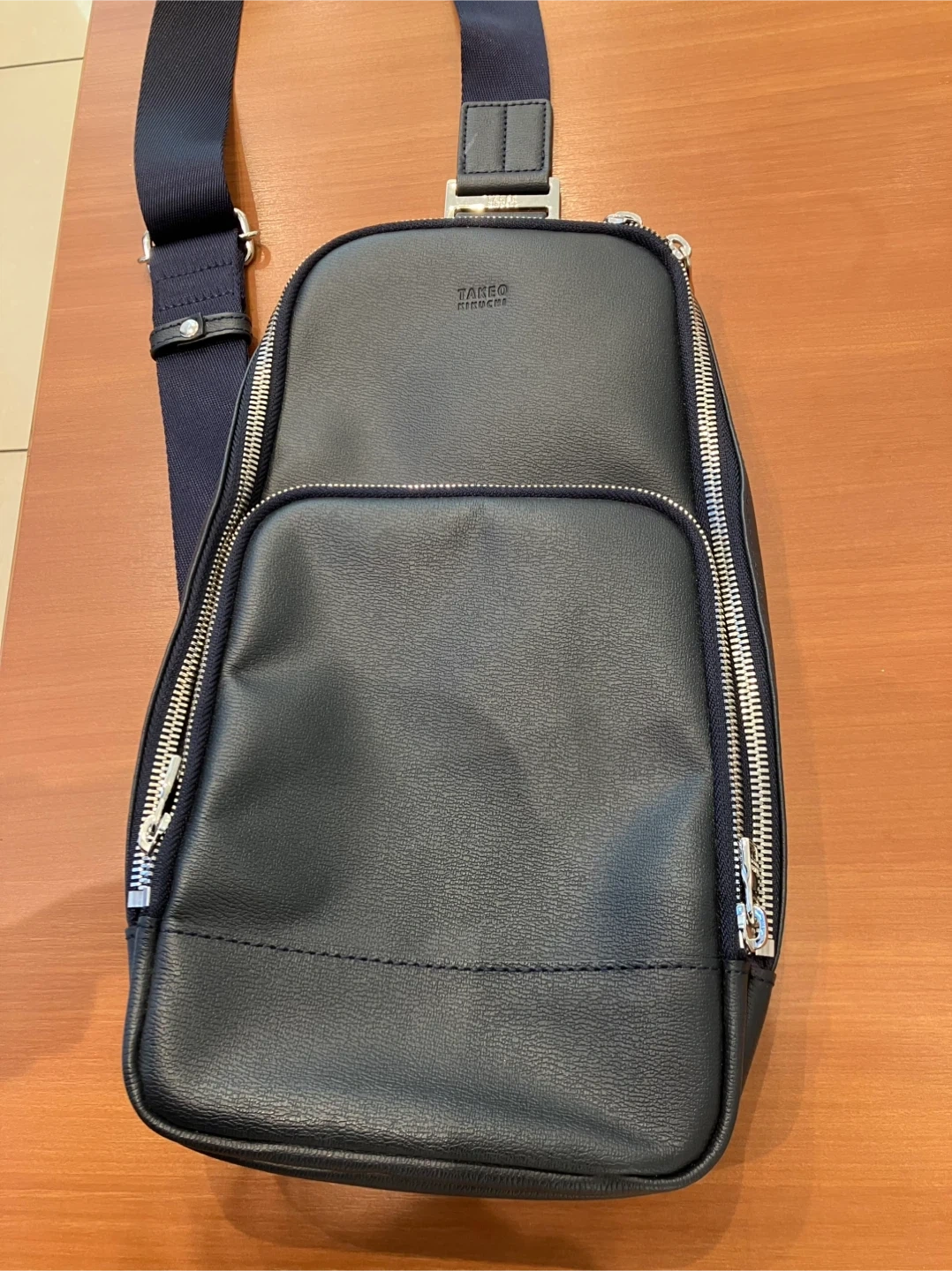 タケオキクチのボディバッグです。 ・ブランド:タケオキクチ ・色:ネイビー ・状態:未使用 傷はクリームとかで補修は可能かと思います 中身が汚しそうなので使えないので 出品致します 1箇所傷あり