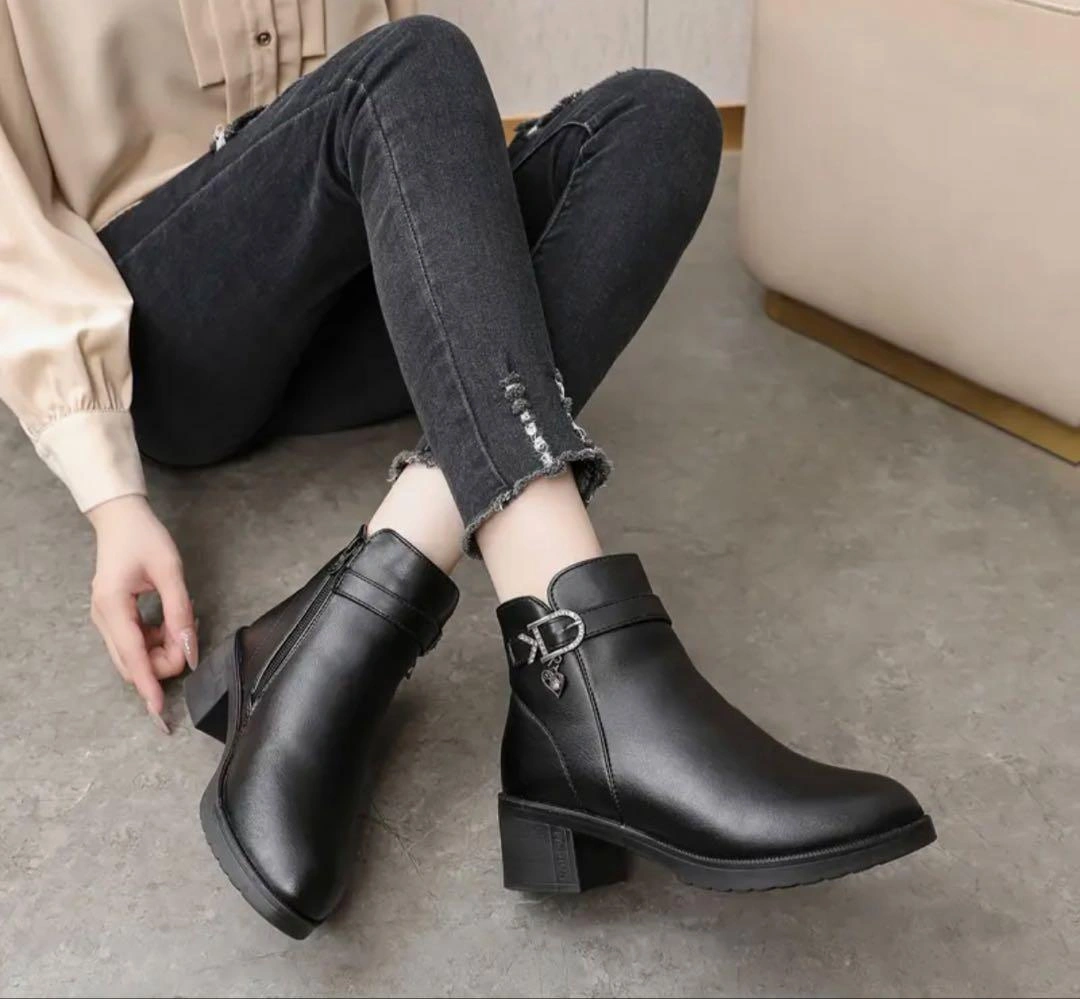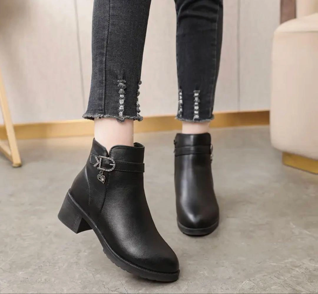合成皮革素材のブラックブーツです。バックジッパーとベルト付きのデザインです。 - 色: ブラック - デザイン: バックジッパー付き - ヒールの高さ: 中ヒール - 装飾: ベルトとバックル付き - 素材: 合成皮革 - スタイル: カジュアル ご覧いただきありがとうございます。 ご希望の方はお気軽にご連絡ください。