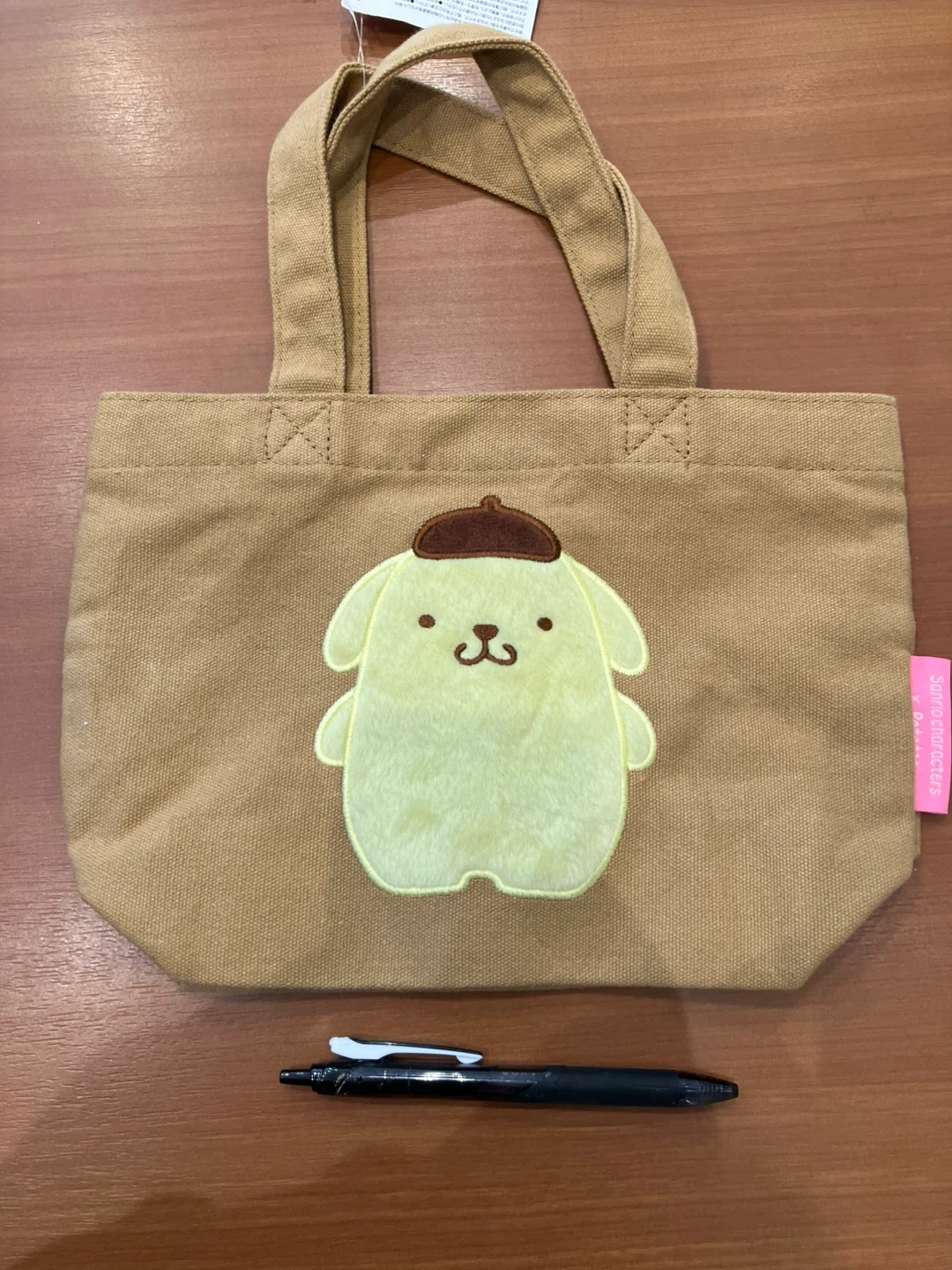 サンリオのポムポムプリンのミニトートバッグです。 ・色:ブラウン系 ・ポムポムプリンのアップリケ付き 中古品であることをご了承ください。 ⚠️サイズが測るのなったので ボールペン置いてます