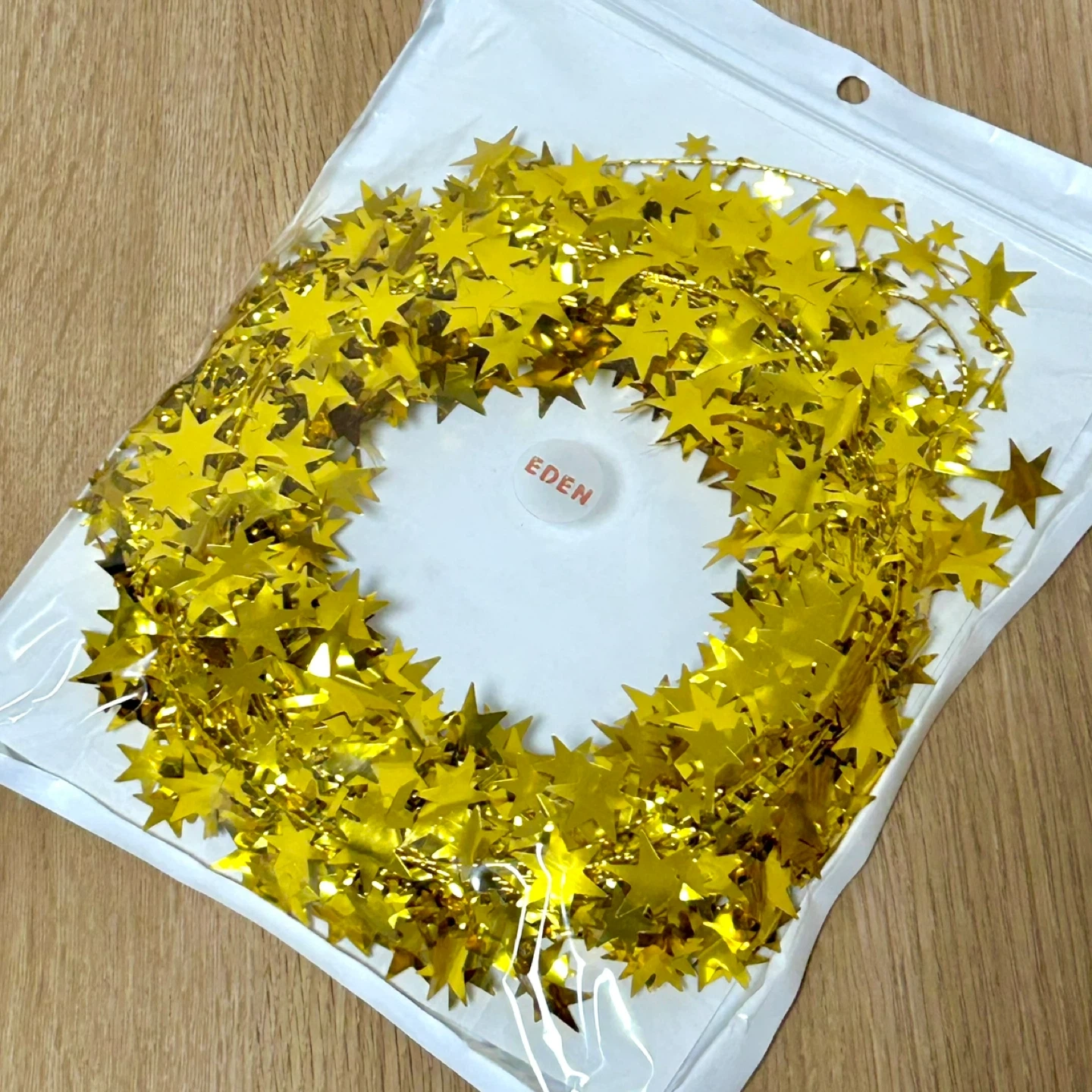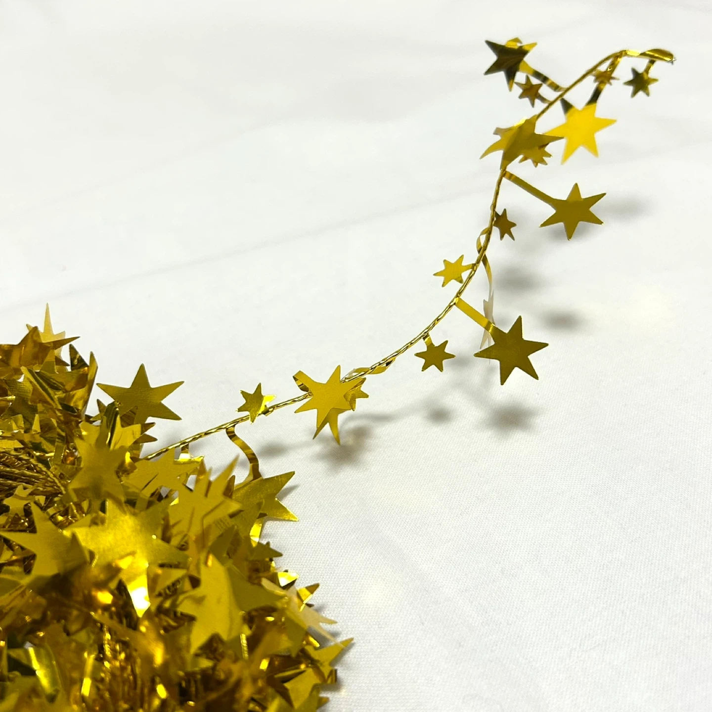 ディスプレイ用のスタ ーガーランド2本セットです。 針金入りだから形状を思い通りにできます。 ランダムな大小の星形がキラキラしてかわいいです。 パーティーデコレーションや工作などにも。 星の折れは通常仕様です。あらかじめご了承ください。 未使用ですが包装は開けてしまっています 購入時定価:¥1,199 【サイズ・仕様】 サイズ/長さ:約15m(約7.5m×2本) 色 /ゴールド