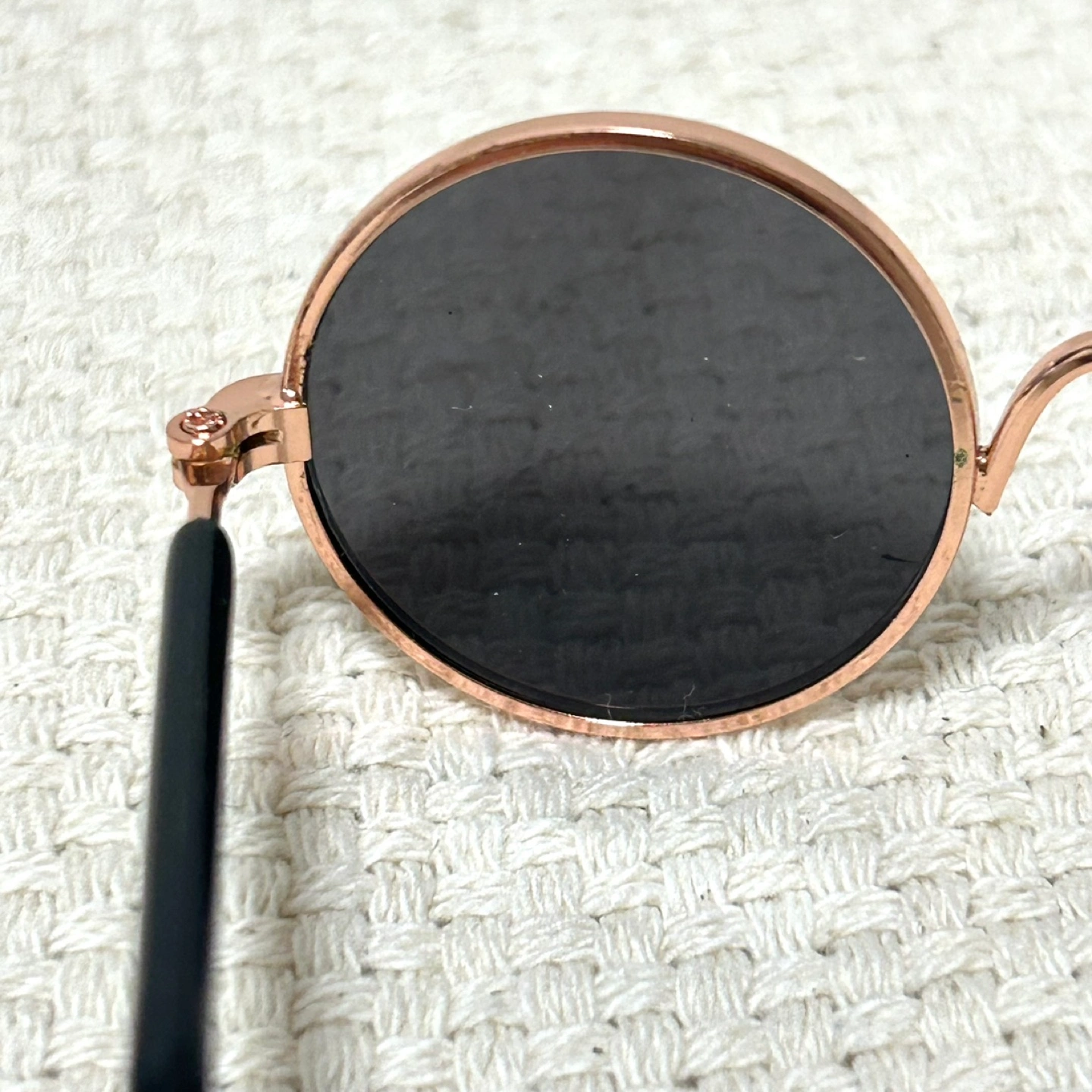 猫など小型ペット用のサングラスです。 大きめの人形やディスプレイ小物にもどうぞ。 ちゃんと透けているので目隠しにはなりません。可愛いです。 顔が大きめの子にはちょっと難しいかもしれません。 嫌がる猫ちゃんには無理にさせないようお願いします。 未使用です。 購入時価格:¥1,000円 【サイズ】 サイズ:幅 8.5x高さ3xつるの長さ約7cm 重量:10g 生産国:中国 #ペットグッズ #おもちゃ #ミニチュア