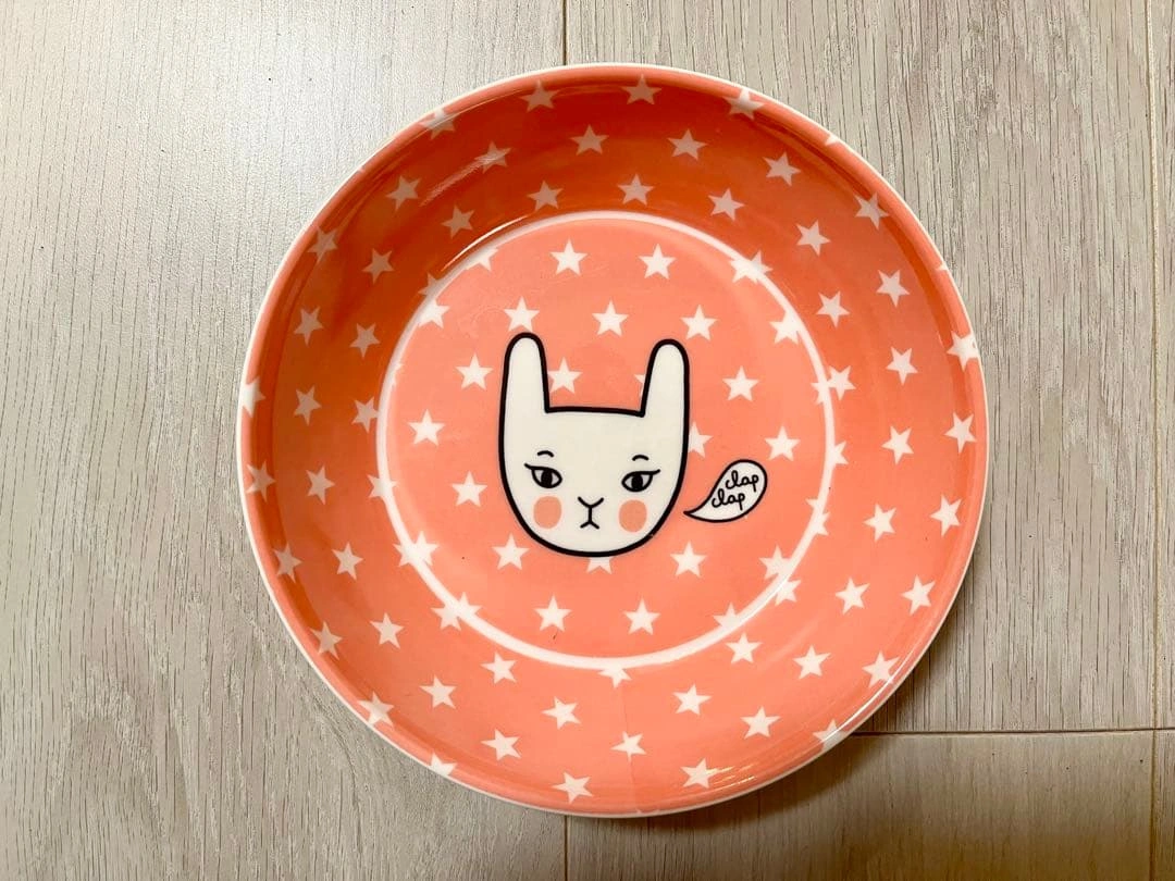 【未使用】Audrey Jeanne*ウサギのイラスト付き*ピンク皿*メラミン