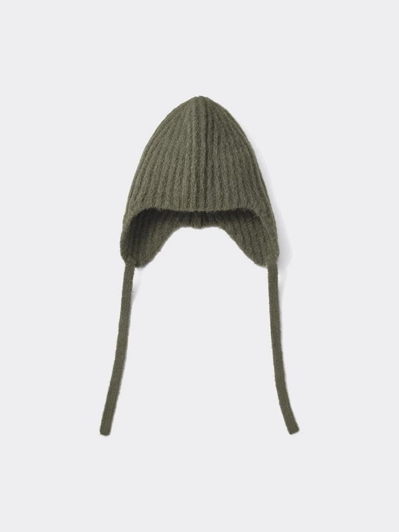 未使用【GU】ニットイヤーフラップキャップ オリーブ