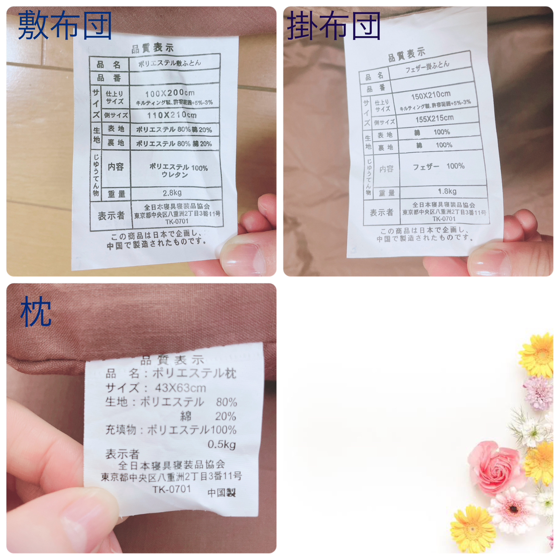 ほぼ未使用の布団4点セットです。 ・敷布団 ・掛け布団 ・枕 ・枕カバー サイズ シングル (具体的な寸法は画像参照) カラー ダークブラウン 客布団として購入しましたが、1回も使用しておりませんで、本日引越し日で1日だけ使用しました。 ★本日お渡しできる方にお譲りいたします。 14時ごろまででしたら牛込神楽坂のマンションでのお渡し、夜でしたら日暮里駅前のマンションでのお渡しになりますので、よろしくお願いいたします。