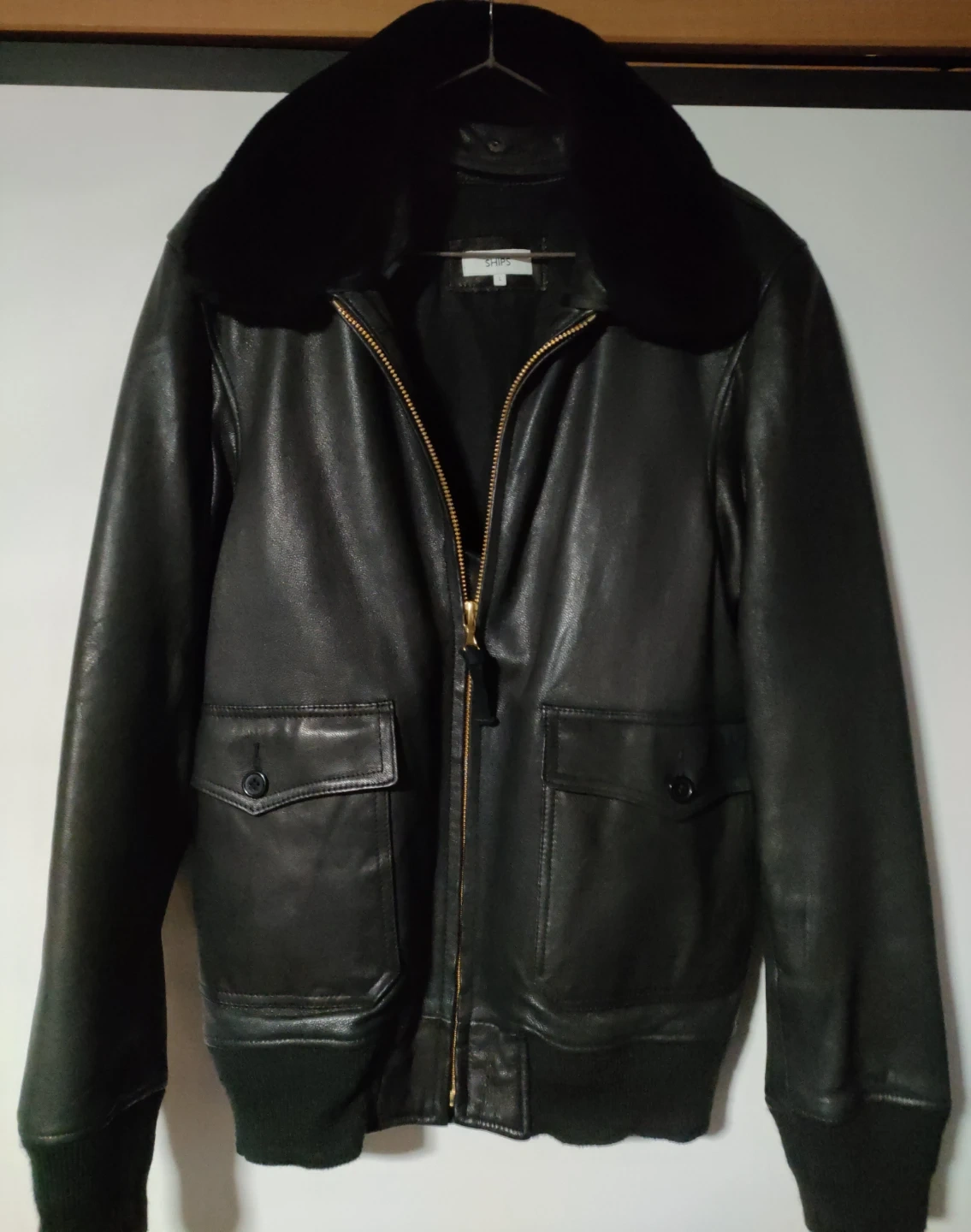 本革G-1フライトジャケット(山羊革)襟ボア(羊革ムートン)SHIPSの革ジャケット