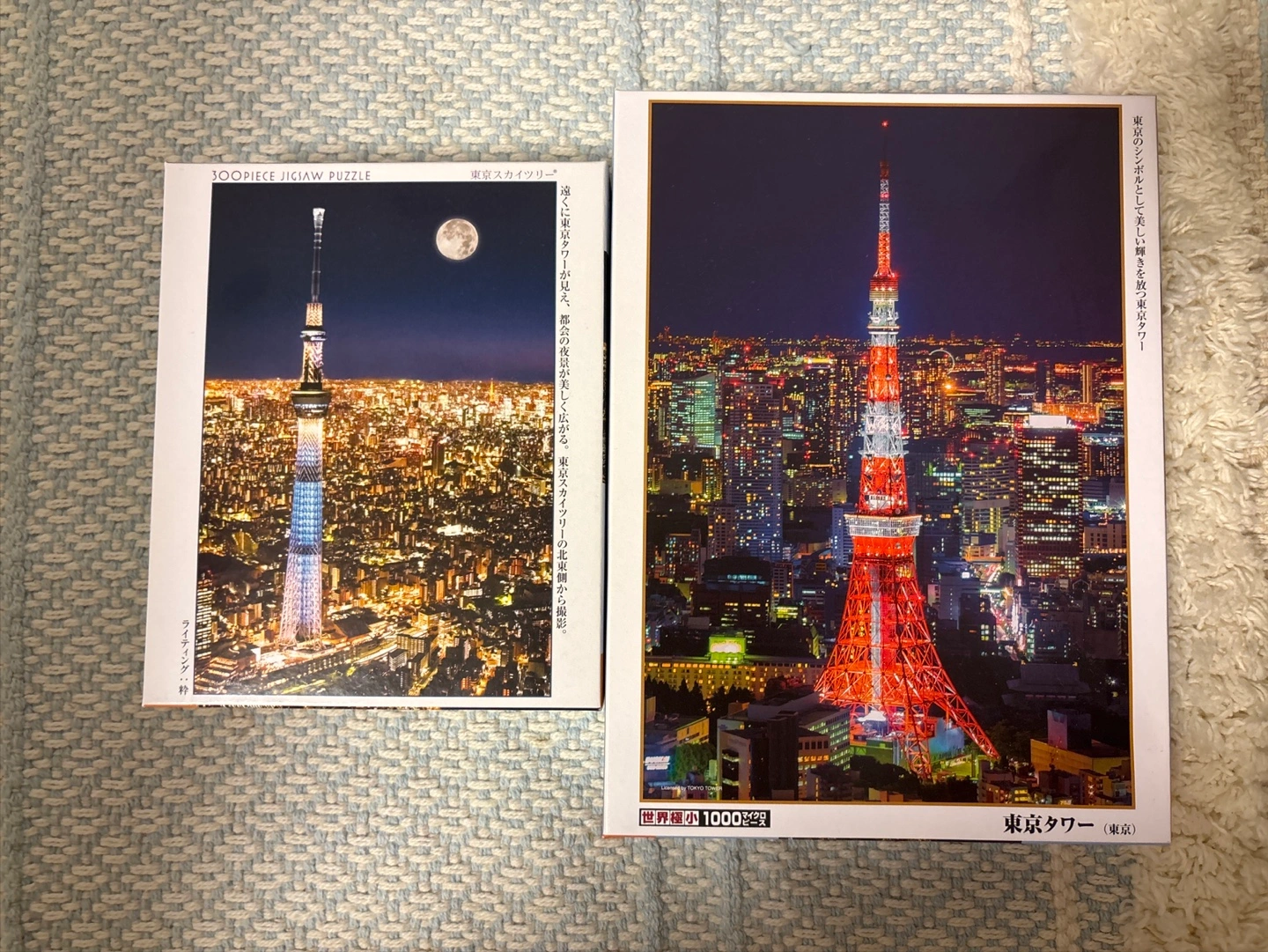 ・東京タワー 1000マイクロピース(38×26cm) ・東京スカイツリー 300ピース(38×26cm) 一回だけ遊んだパズル 全部のピースが揃っています。