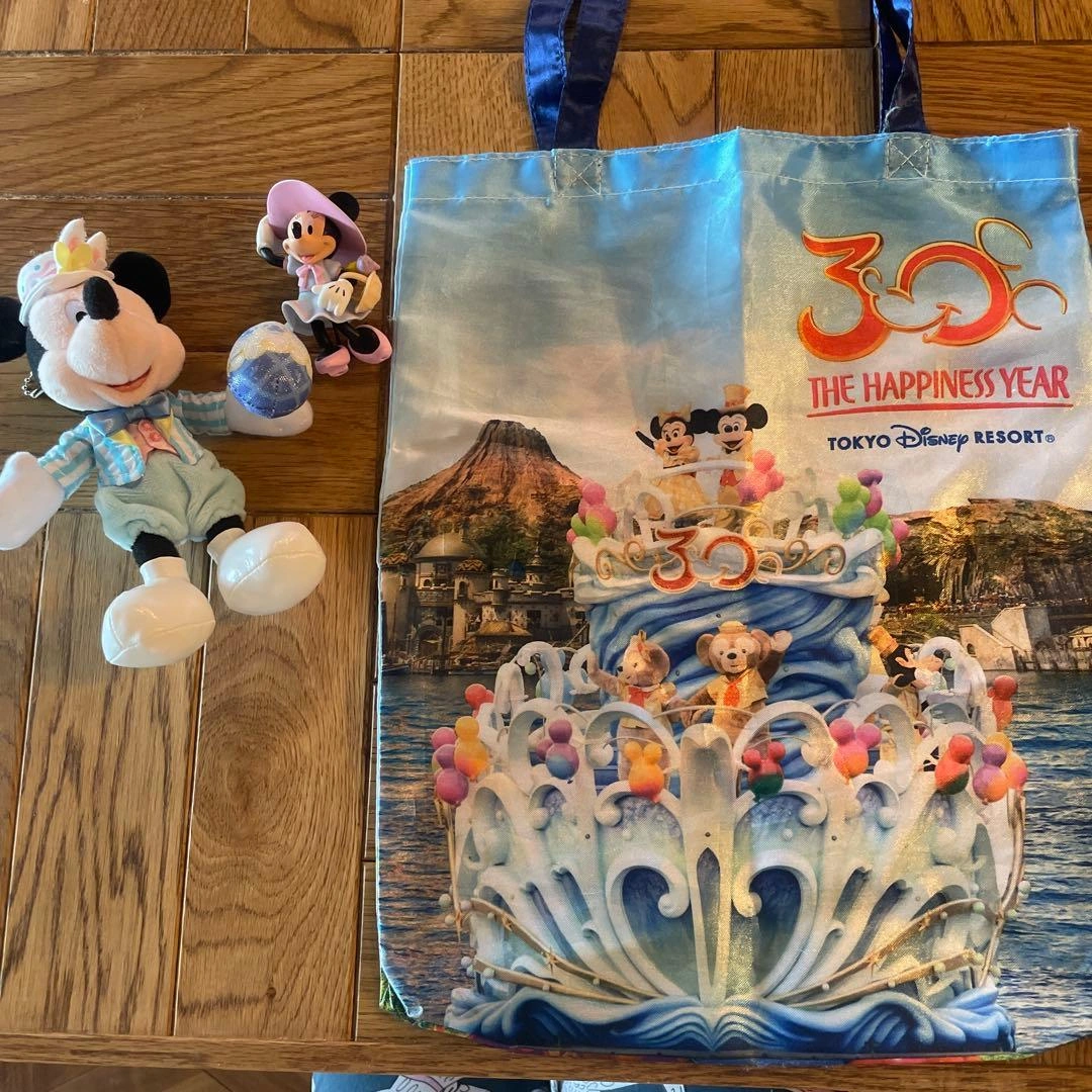 ご覧いただきありがとうございます。 30周年を祝う東京ディズニーリゾートのエコバッグと2020年イースターのミッキーマウスのぬいぐるみキーホルダーです。 - キャラクター: ミッキーマウス - イベント: 30周年記念 - 付属品: ①キーホルダーにピン付き ②ミニーマウスのフィギュア 未使用ですが、自宅保管されていました。 ご希望の方はお気軽にご連絡ください。
