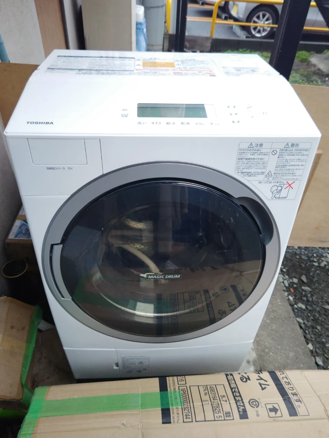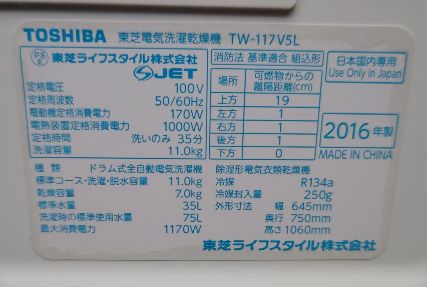 ※ こちらは「代理投稿」です。 東芝のドラム式洗濯乾燥機です 【情報】 ブランド:東芝 型番:TW-117V5L 年式:2016年製 洗濯容量:11.0kg 乾燥容量:7.0kg サイズ:幅645mm 奥行750mm 高さ1060mm 【状態】 本日(11/10)まで、普通に使用していました。 引越しに伴い、買い換えたためお譲りします。 使用感はありますが、目立つキズはありません。 年に3~4回は、ドラム内部の洗浄剤で清掃していました。 最近、乾燥の時間が長くなっている気がします。 乾燥部分の清掃は、購入者様にてお願いします。 お引渡しは、川崎市川崎区の当方倉庫になります。 お取引はノークレームノーリターンです。