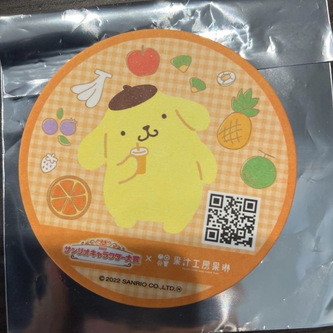 果汁工房果琳 コラボ ポムポムプリン柄のコースター 中身確認の為とりだし、袋に戻してます。 ご希望の方はお気軽にご連絡ください。