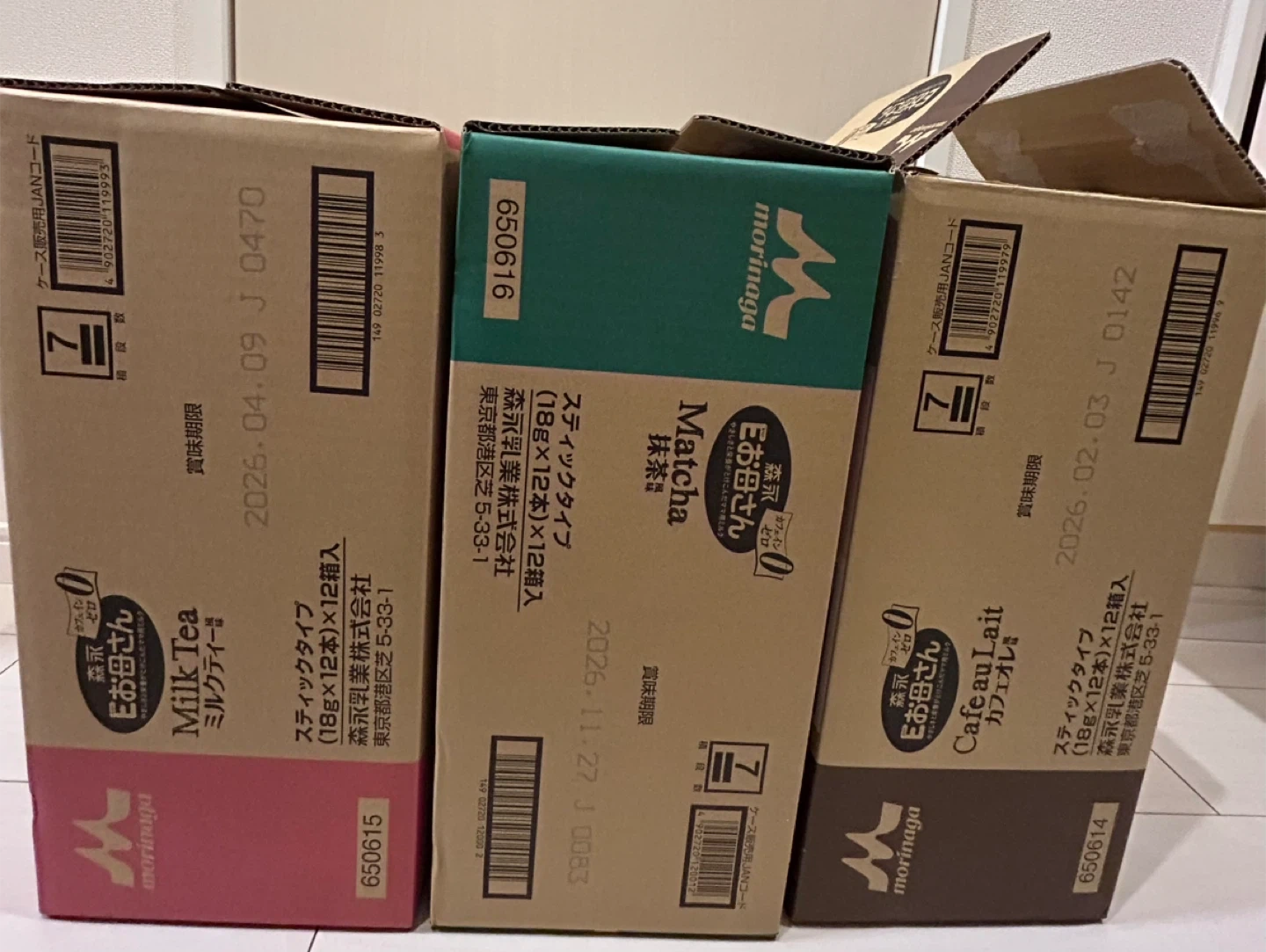 森永 Eお母さん ・ミルクティー風味 18g×12本入 11箱  賞味期限 2026.04.09 ・抹茶風味 18g×12本入 11箱  賞味期限 2026.11.27 ・カフェオレ風味 18g×12本入 11箱  賞味期限 2026.02.03 計33箱セットです。 ※バラ売り応相談 重くて運べないため、指定場所(最寄り:洗足池駅)までお越しいただける方のみとさせていただきます。 場所の情報はご購入確定時にお伝えいたします。