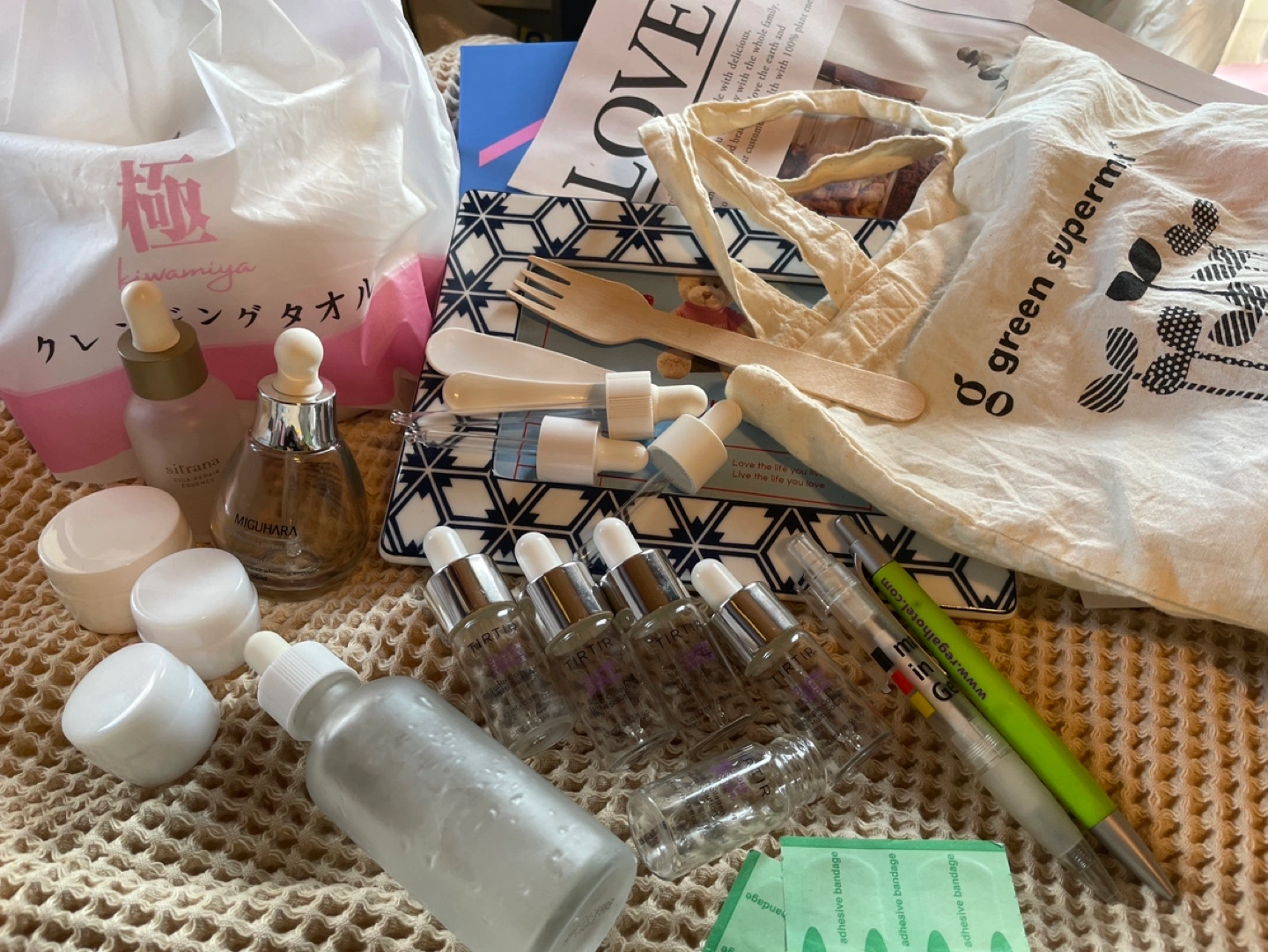 新品&usedミックス SALE‼️ 90%オフ! ほぼ無料(#^.^#) 1点 18円計算‼️😊 ✅新品容器 ジャータイプ 大小3点 クリームなどの小分けにどうぞ🐤 使わないのでお譲りします♡♡ 早い者勝ちです‼️ ✅ミヤマ 極クレンジングタオル コットン 80枚入り▸︎▹︎▸︎▹︎ メイク落とし、キッチンでも使えます♥️ 2割程は使用したと思います。 袋外にペンの汚れありますが 中身に支障はございません🤗 洗って繰り返し使えます☝️ 大掃除にも大活躍🧹🧹🧹🧹 クレンジングタオル 使い捨て ペーパー メイク落とし クレンジング 肌ケア 掃除 手拭き タオル 【極 クレンジングタオルの商品詳細】 ●柔軟性に優れ、きめ細かい上質な肌触りを実現!! ●メイク落としや全身清拭、手拭き、お掃除など多目的にお使い頂けます。 ●一回ごとに使い捨てなので常に清潔でとても便利! ✅美容液空容器8点おまとめセット tirtir、manyo他空容器お譲り致します。 詰め替え時にお使い頂けます。 化粧水、美容液など、 旅行用に✈️ ミグハラの容器はインテリアとしても 🙆♀️⭕️ 大きな方は一輪挿しにも🌷なります。 ミグハラ セラムのガラス容器大 manyo美容液ガラス容器 乳白色のガラスです。 スポイト長いので使いやすいです♡♡ ✅スパチュラ 2点 DUOなど。 バームやクリームを塗布する際に 便利♡ 指を使わないので衛生的です。 ✅スポイト ×3 化粧水を小分けにする際にどうぞ♡ 全て消毒済みです。 下記は無料換算です♥️♥️ ✅木製フォーク🍴 ✅made in 🇩🇪 germanyボールペン 他 2点 ✅絆創膏 4枚 ✅オーガニックコットンエコバッグ A4サイズ 欲しい方はお譲りします🎁🎁❤️ セットでお得🉐