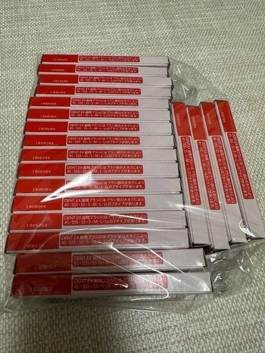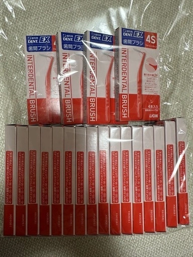 ご覧いただきありがとうございます。 歯間ブラシ4Sサイズ4本入りを、20箱セットで販売です。 新品・未使用です。 購入したままお写真の通りビニール袋に入れて扉が閉まる棚に保管しておりました。 デンタルフロスを使うようになったため、使用しないためお使いの方ぜひご検討ください。 ライオン DENT.EX 歯間ブラシ 4S 4本入 ブランド:LION ご希望の方はお気軽にご連絡ください。