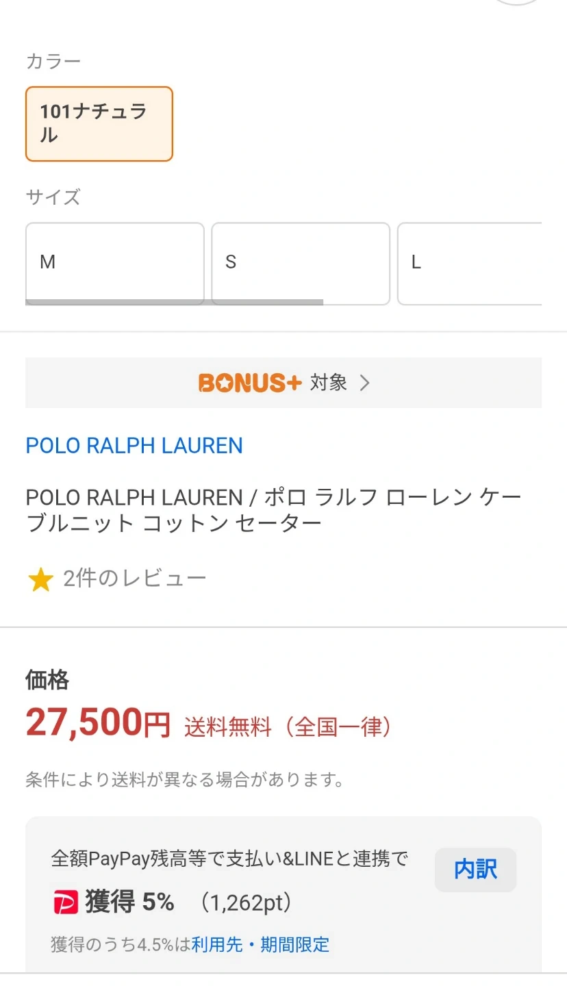 すべて見る殆ど未使用品。Polo Ralph Lauren ケーブルニット コットンセーター