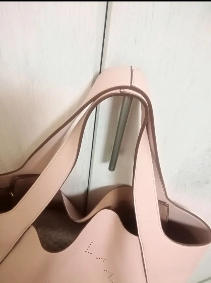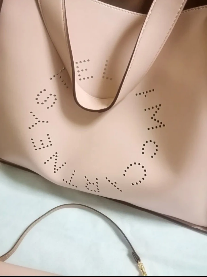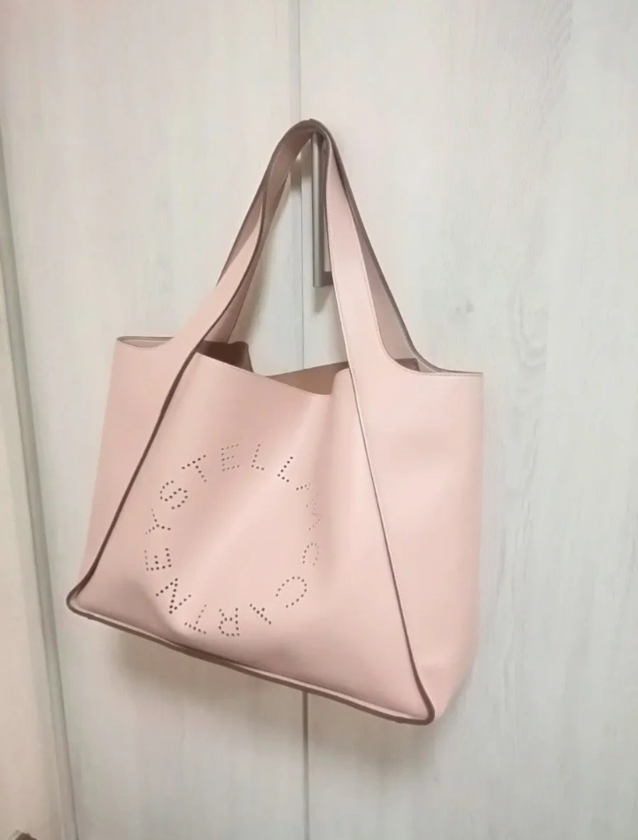★★もう1つロゴトート2wayクロスボディも出品 Stella McCartney ステラマッカートニー ロゴトート バッグ ラージ ポーチ付き(未使用) 購入価格 約 143,000円 ★★ 大人気なステラマッカートニーのロゴトート ラージ パンチングサークルロゴがオシャレさんなバッグです。 肩掛けも出来非常に軽くてオンオフに活躍出来るトートバッグですね。 こちらは殆ど未使用近い非常に綺麗な状態ですが、1度使用してますのでご理解の方に。 size 約 40x31.5㎝ マチ約15㎝ color ブラッシュピンク (ピンクベージュに近いお色) 未使用取り外しポーチ付き。