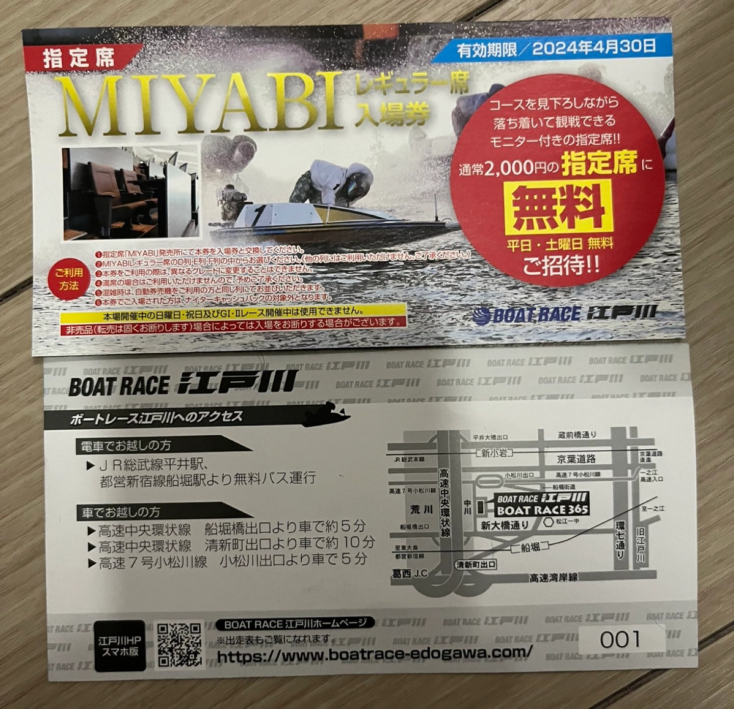 ☆使用期間が来月末までなので破格の値段での出品となります☆ 本開催日の土日祝日はご利用出来ない旨を伝えておきます! -- 商品名: 江戸川競艇MIYABIレギュラー指定席 4枚セット カテゴリ: スポーツ⇒公営ギャンブ ル! 商品の状態: 未使用 お好きな競艇を楽しむための、MIYABIレギュラー指定席をご提供します。未使用のチケット4枚を1セットとして、合計10セットの限定販売となります。早い者勝ちのため、ぜひお早めにご検討ください。 使用頻度・出品理由: これらのチケットは購入したものの利用する機会がなく、未使用のまま保管していました。より多くの方に江戸川競艇の楽しみを提供できればと思い、出品しました。 仕様: 1. 商品種類: 江戸川競艇MIYABIレギュラー指定席チケット 2. 枚数: 4枚 3. セット数: 10セット限定 4. 使用状況: 未使用 5. 取扱い開始: 先着順 皆さまのご利用をお待ちしております。 尚通常価格1枚二千円です⇒フリードリンク⇒モニター付きリクライニングシート付き! ☆値下げ不可です他のサイトにも出品している為早い者勝ちです ★残り5セット早い者勝ち! 枚数···4 ★ご不明点等ございましたらご連絡ください。★