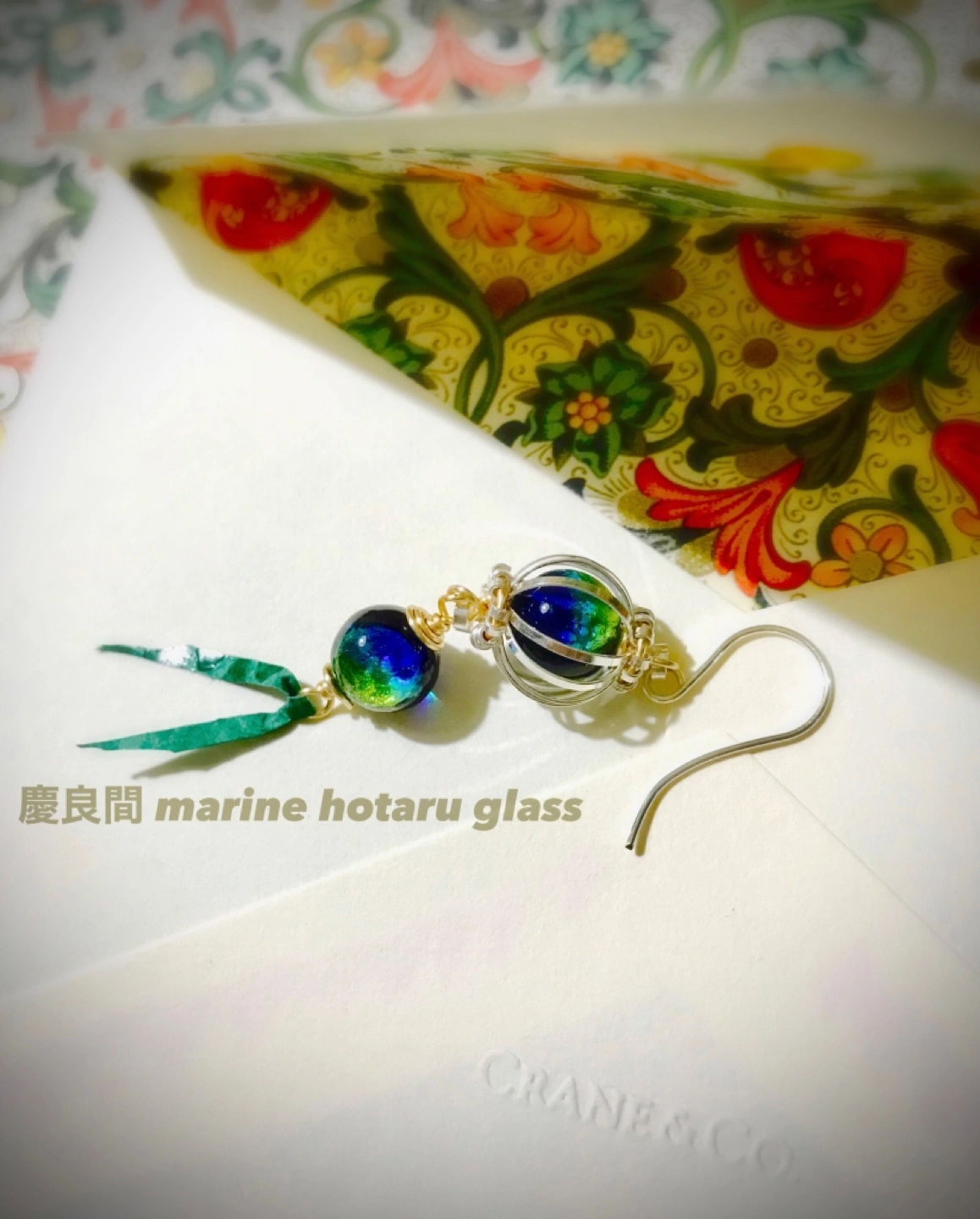 沖縄 慶良間マリンホタルガラス/ハンドメイドシングルピアス新品