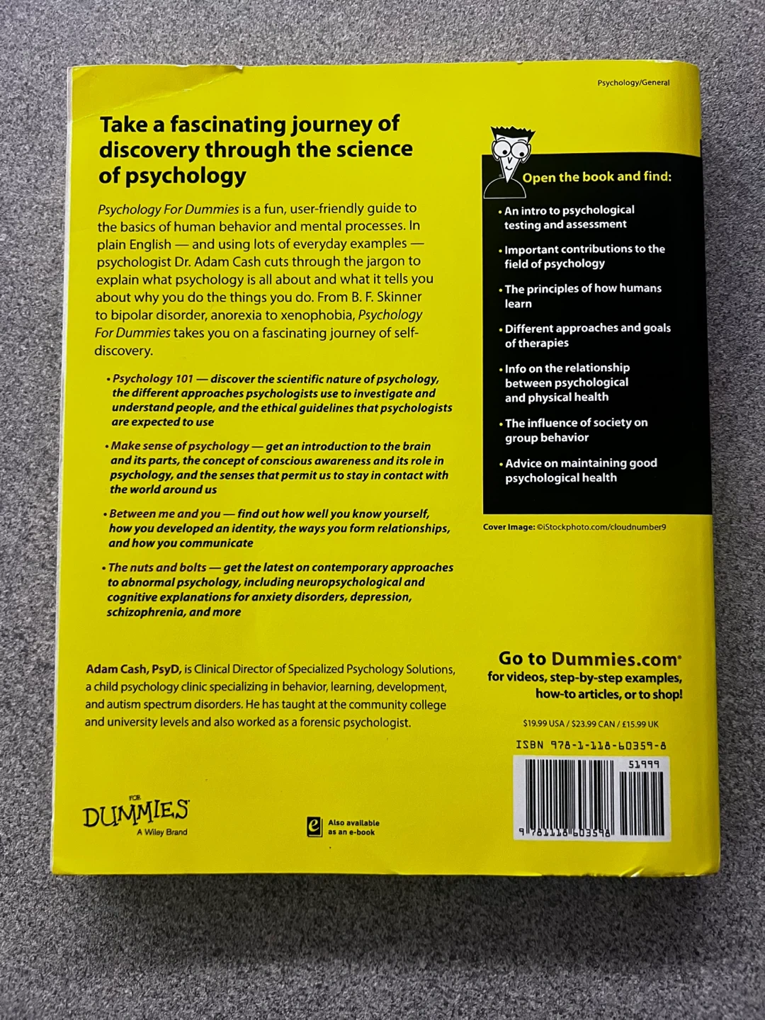 心理学の解説本です。 ・タイトル:Psychology FOR DUMMIES ・著者:Adam Cash, PsyD ・エディション:2nd Edition 中古品であることをご了承ください。