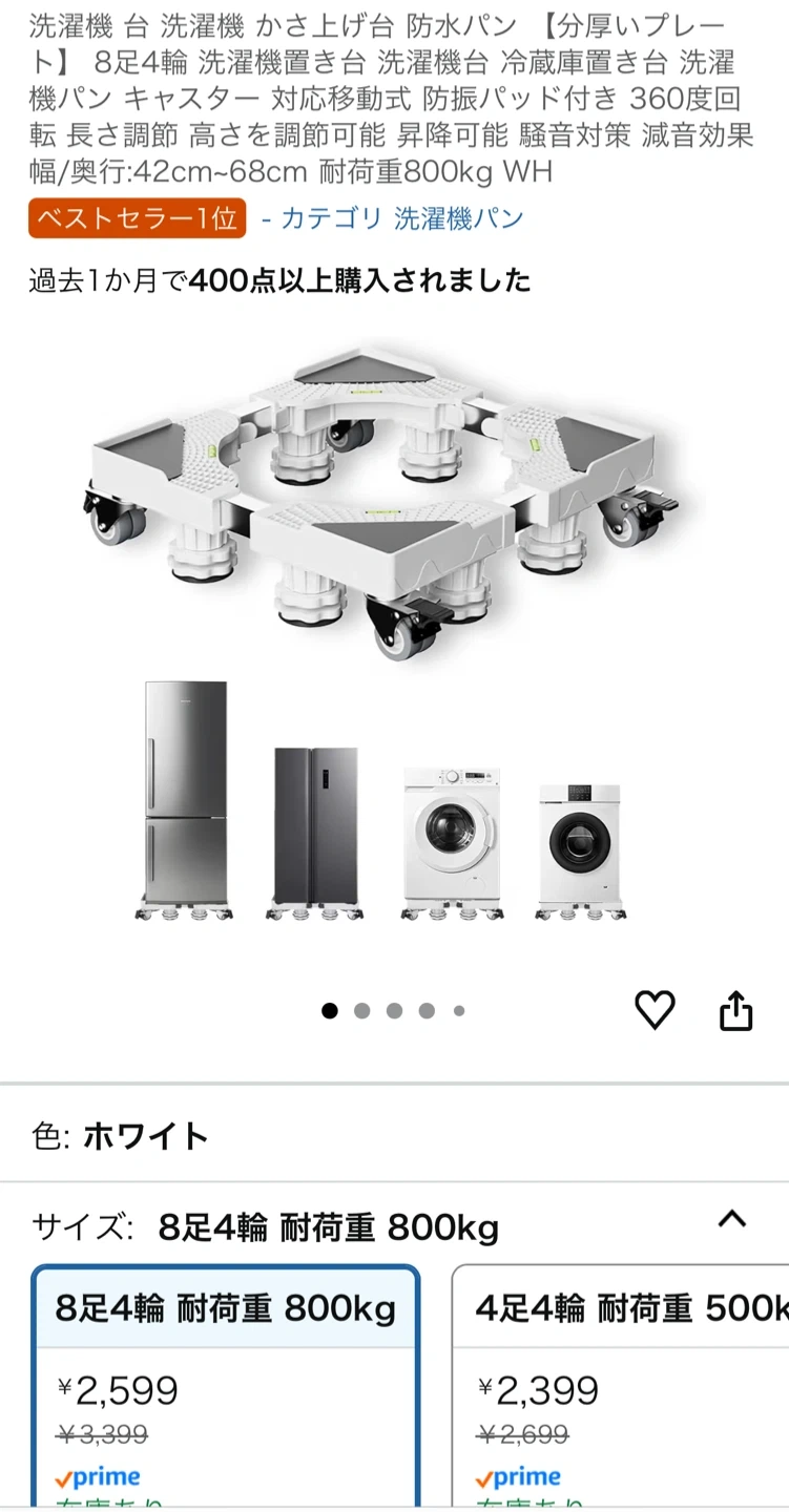 お取り引きご希望の方はご都合の良い日時をお知らせください 洗濯機台です キャスター付きがNGだったため出品いたします ・色:ホワイト ・幅:42〜68cm ・高さ:10〜13cm ・8足4輪 耐荷重800kg 詳しいスペックに関しては以下のページをご参照ください https://www.amazon.co.jp/ISKALT-%E3%80%90%E5%88%86%E5%8E%9A%E3%81%84%E3%83%97%E3%83%AC%E3%83%BC%E3%83%88%E3%80%91-%E6%B4%97%E6%BF%AF%E6%A9%9F%E7%BD%AE%E3%81%8D%E5%8F%B0-%E9%98%B2%E6%8C%AF%E3%83%91%E3%83%83%E3%83%89%E4%BB%98%E3%81%8D-%E9%AB%98%E3%81%95%E3%82%92%E8%AA%BF%E7%AF%80%E5%8F%AF%E8%83%BD/dp/B0FF4QYVZK 一度も使用しておりませんが、中古品であることご了承ください 画像2枚目のようにバラしてお渡しします ご不明点があればお気軽にご連絡ください