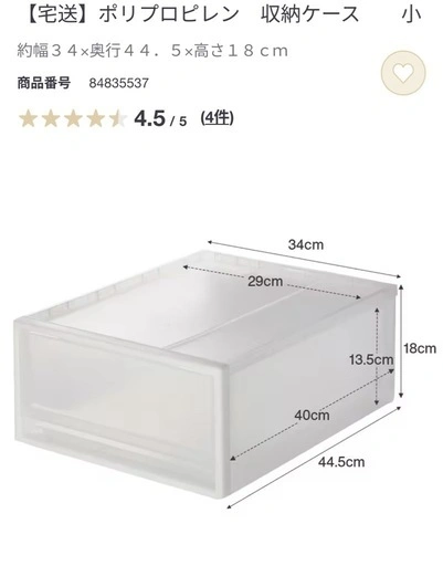 無印良品の定番ポリプロピレン衣装ケース(深サイズ)を1個お譲りします。 1年未満の使用で状態も良く、引越し先のクローゼットとサ イズが合わず手放すことにしました。 サイズ: 約 幅40×奥行65×高さ30cm 直接お渡しとなります。 ※同時に中サイズ・小サイズも出品しております。 複数ご購入の方を優先いたしますが、1個からのご購入もご相談ください! ご興味のある方はお気軽にお問い合わせください。