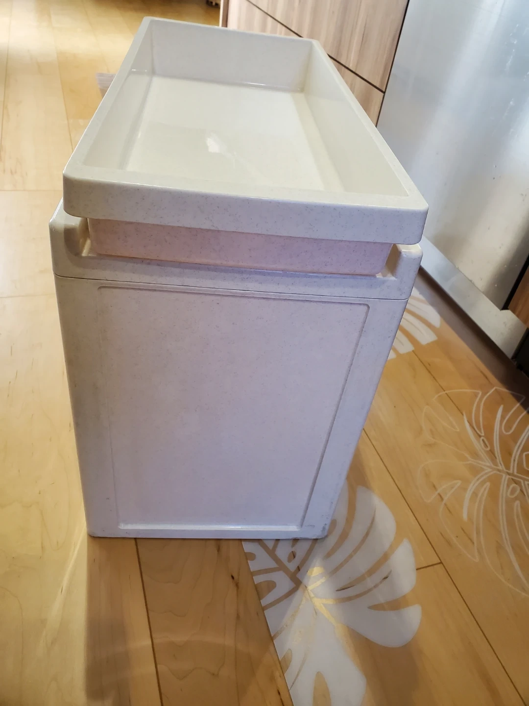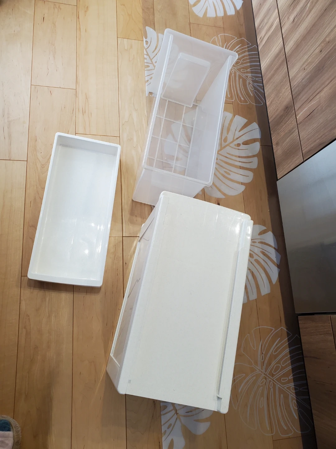 ◼️外寸(上のスライド トレー含む外寸です) 高さ38.5㎝ 横幅25㎝ 奥行47㎝ ◼️内寸(下引出し) 高さ(深さ)28㎝ 横幅18㎝ 奥行42~44㎝ 詰め替え用の1Lの洗剤等や、殺虫スプレーなどが立てて収納でき、大変重宝しました。 環境清拭クロスでしっかり拭きましたが使用感は残ります。ご了承ください。 気にされるかたはご遠慮いただいた方がよろしいかと思います。 所定の場所に取りに来ていただけるかたでよろしくお願いします。 ヨークフーズ石神井店の入口2つありますが、りそな銀行ATMがある方の入口です。ベンチがあるのでそこで待ち合わせさせていただきます。 雨の場合は店の入口に入った所にさせていただきます。 また、お釣りは用意できません。 よろしくお願いします。