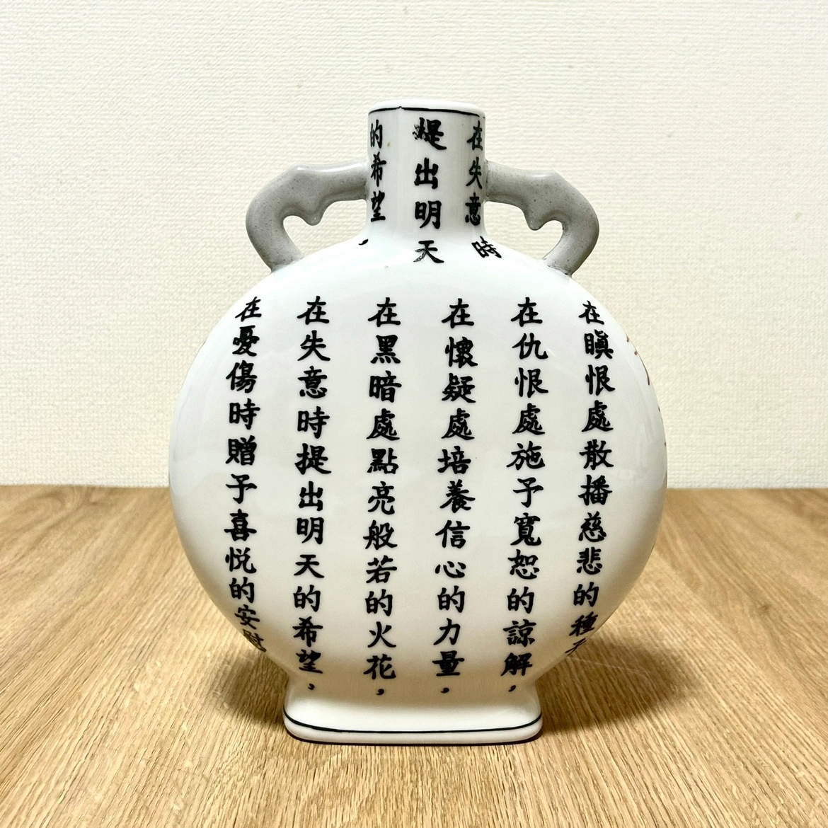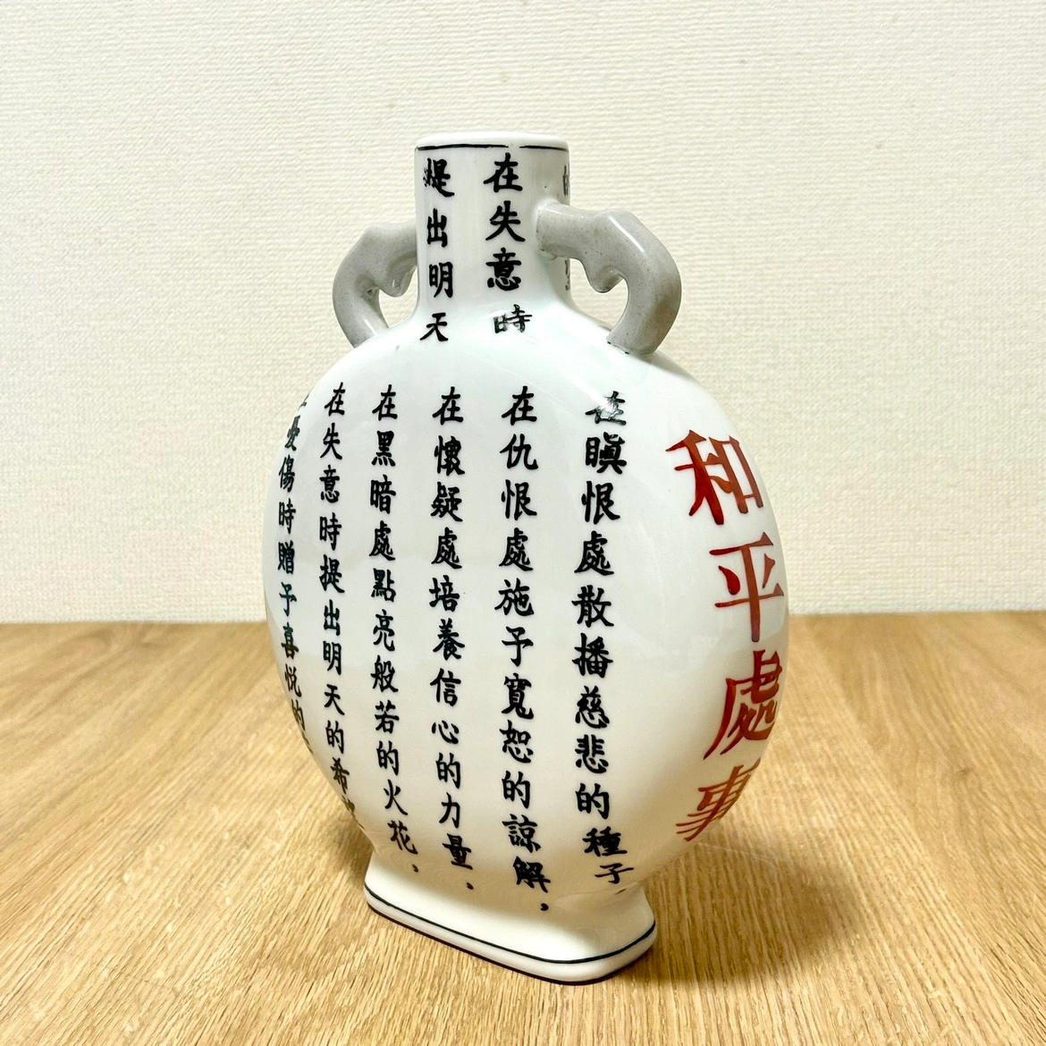 謎のアジア風の壺です。 昔渋谷にあったアメリカンラグシーで買ったのですが、 たぶん海外の人が考える東洋風!みたいな商品だと思います。詳細は不明。 漢字もなんと書いてあるのかわかっていません。 見栄えが良く存在感があるのでインテリアにいかがでしょうか。 かなり分厚い陶器で重いです 短期間飾っていただけなので大きな傷や汚れはありません。 サイズ : 幅21 高さ26 厚み7cm 重量 : 約1.8kg