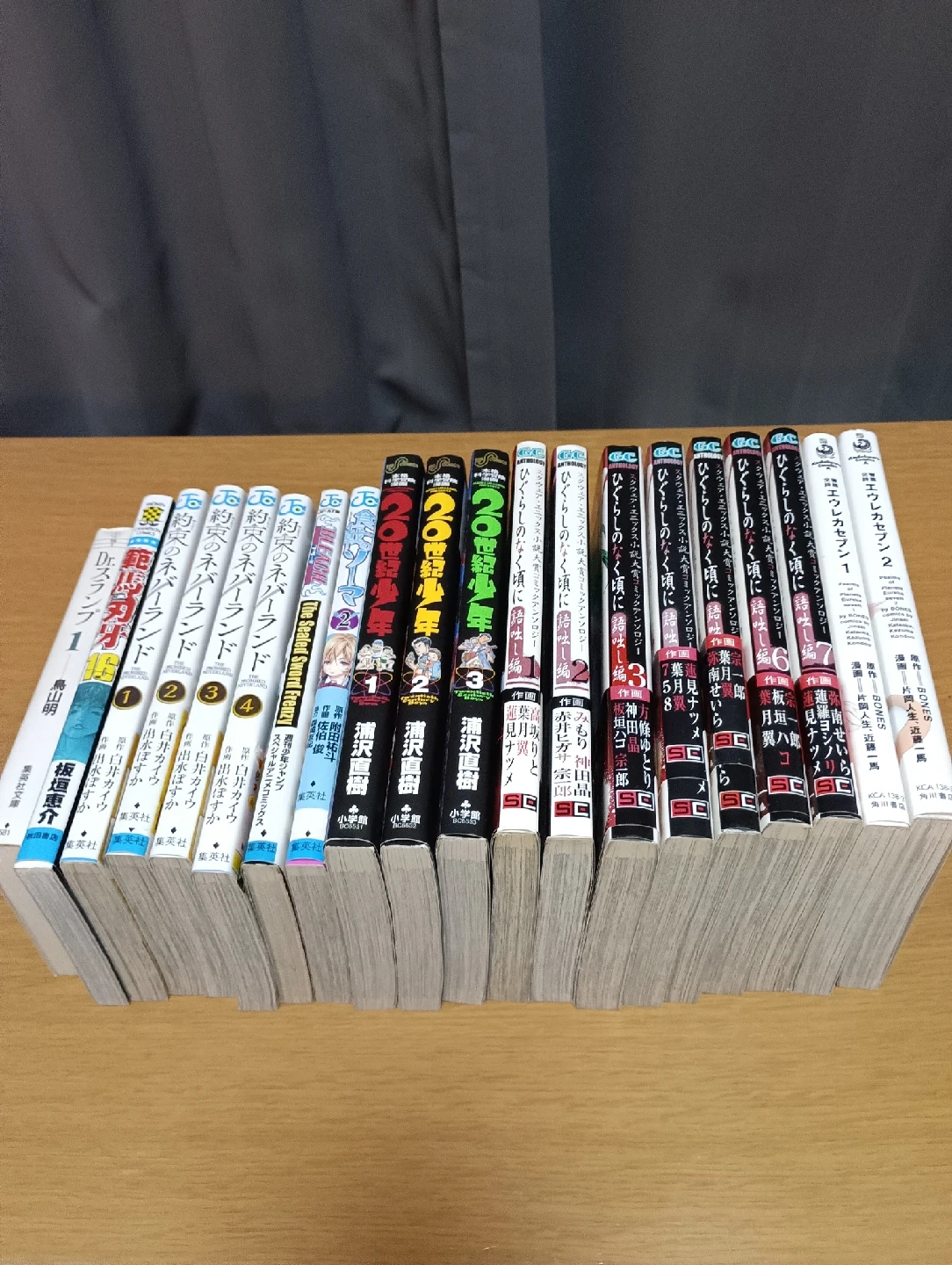 漫画のまとめ売りです 範馬刃牙、ひぐらしのなく頃に エウレカセブン、約束のネバーランド 20世紀少年、BLEACH他 ・複数の漫画が含まれています ・巻数は写真でご確認ください ・使用感は様々です 中古品であることご了承ください