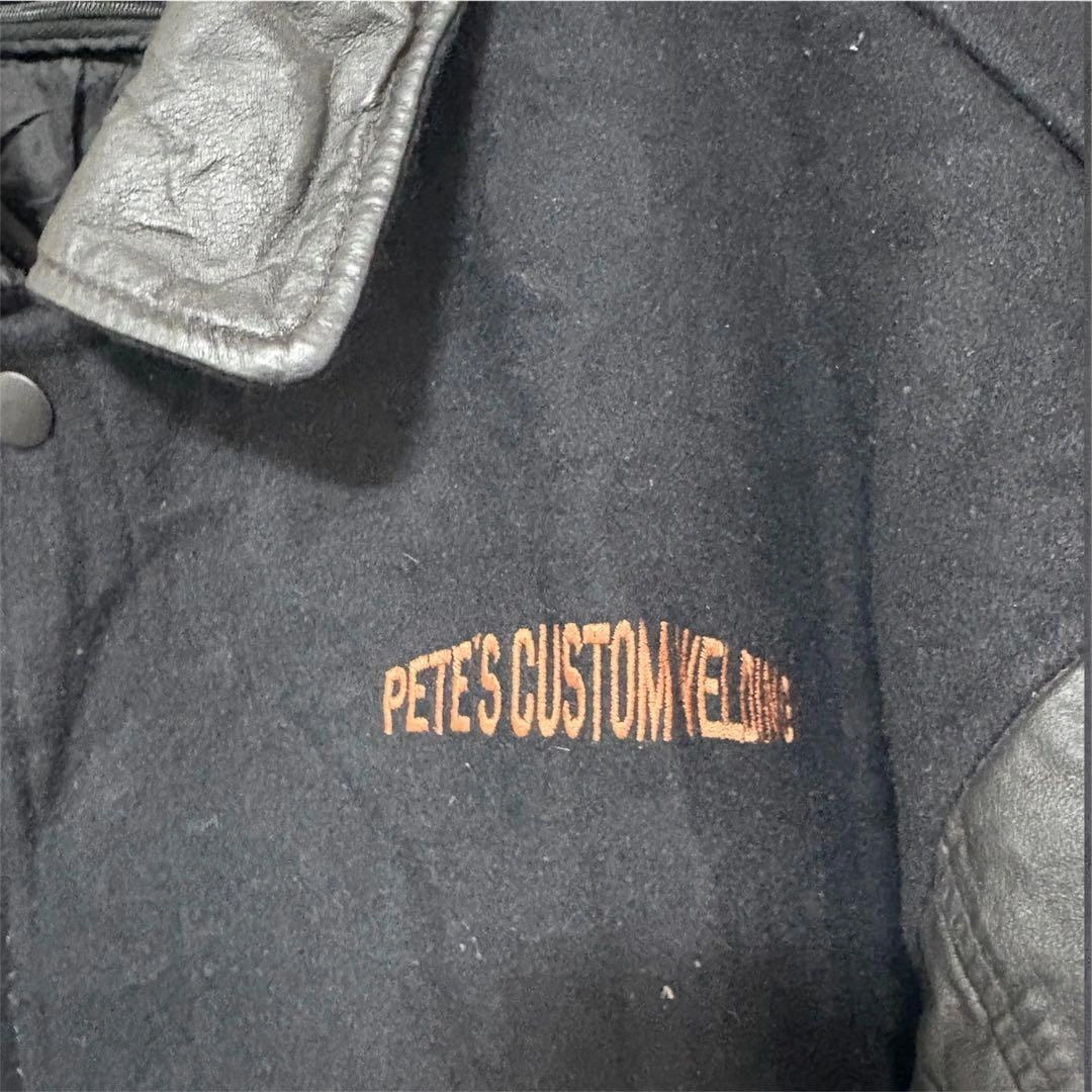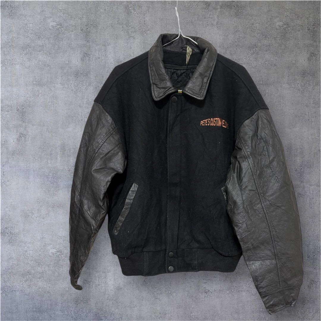 無骨なアメカジ、ワークスタイルがお好きな方へ。 知る人ぞ知るUSボディメーカー「AMANATI」による、本革袖のヴィンテージスタジャンです。 このジャケットの最大の魅力は、胸元の刺繍。「PETE'S CUSTOM WELDING(ピーツ・カスタム・ウェルディング)」、つまり「溶接工場」のカンパニージャケットです。 ファッションブランドがデザインした「模造品」ではなく、アメリカの現場の空気感を纏った「本物のワークウェア」というストーリーが、古着好きの所有欲を刺激します。 【ここが推しポイント!】 • 重厚なマテリアル: ボディは肉厚なブラックウール、袖はシボ感のある本革レザー。使い込むほどに味が出る、相棒です。 • 漢のオールブラック: 全体を黒で統一した一番人気のカラーリング。デニムはもちろん、軍パンとの相性も最高です。 • 防寒性: 裏地はキルティング仕様。真冬のアウターとしても活躍します。 • ゴールデンサイズ: 日本人の体型に合いやすいMサイズ。身幅が広めのボックスシルエットで、パーカーの上から羽織れます。 【サイズ(平置き実寸)】 タグ表記:M/M(メンズM〜L相当の着用感) ※写真とハンガーのサイズ感から推定 • 肩幅:約52cm • 身幅:約61cm • 着丈:約64cm • 袖丈:約60cm ※素人採寸のため、多少の誤差はご容赦ください。 【状態】 ヴィンテージレザー特有のスレ、シワ、使用感がありますが、破れなどの致命的なダメージはなく、古着としての雰囲気は最高です。 一点モノの「企業系」アイテムは動きが早いです。 この冬の主役アウターとして、ぜひご検討ください。 ご希望の方はお気軽にご連絡ください。