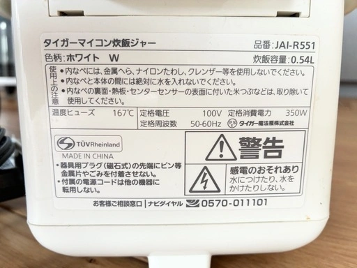 ①炊飯器【TIGER】