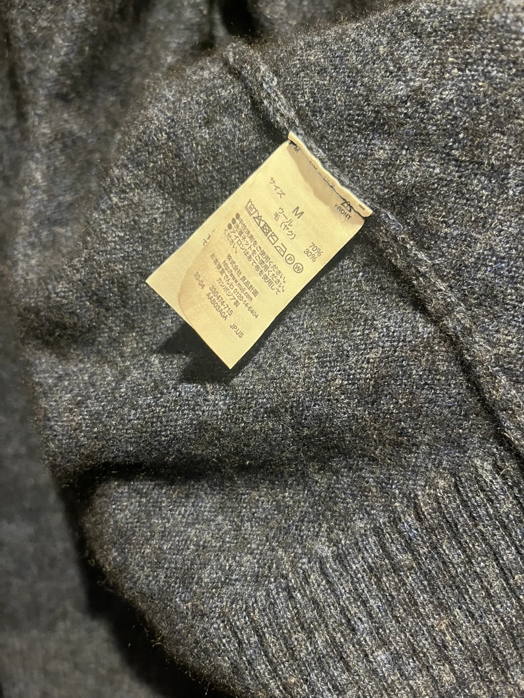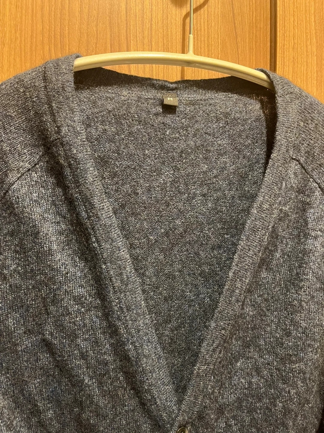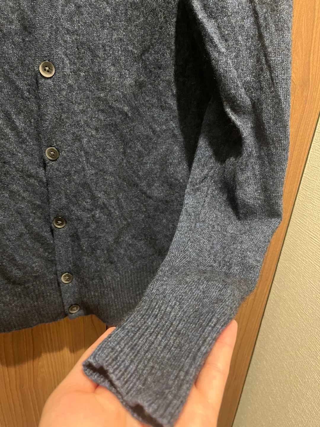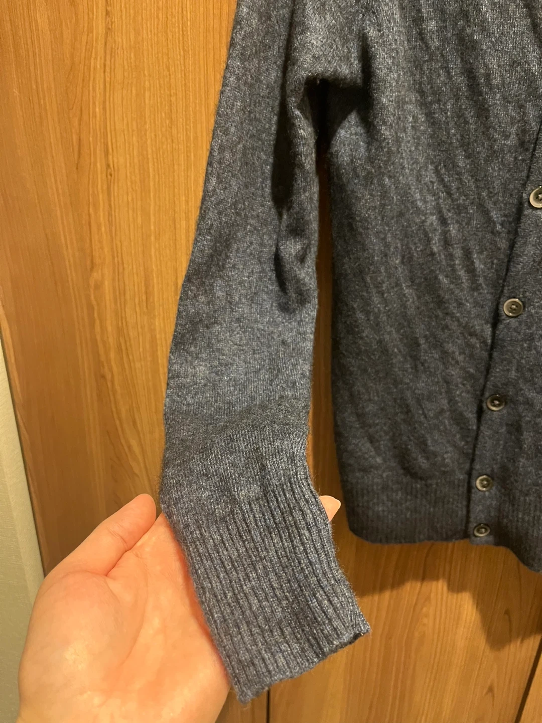 数年前に店頭で購入し、最近まで着用していましたが、断捨離のため、出品します。 無印良品のブルー系のカーディガンです。 ウール70%、毛(ヤク)30%で薄い素材ですが、着用すると非常に暖かく、冬向けとなります。 ビジネスカジュアルやプライベートなど様々な場面で着用できると思います。 多少の毛羽立ちはありますが、まだまだ着用できると思いますが、あくまで中古となりますので、ノンクレーム・ノンリターンでお願いします。 素人採寸のため誤差はあるかもしれませんが、サイズは下記の通りです。 【サイズ】 肩幅39cm 着丈68 cm 袖丈66cm 身幅40cm ※Mサイズですが、洗濯により少し縮んでしまったためか着用時にタイトになっています (伸縮性はあり、私自身は170cmの痩せ型ですが着用はできます) こちらは引き取り限定となりますので、日程調整がスムーズな人から優 先させていただきます。 よろしくお願いします。