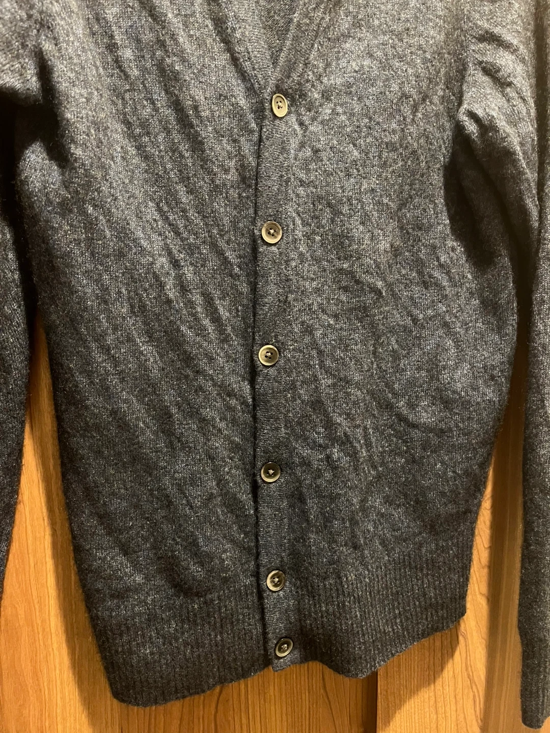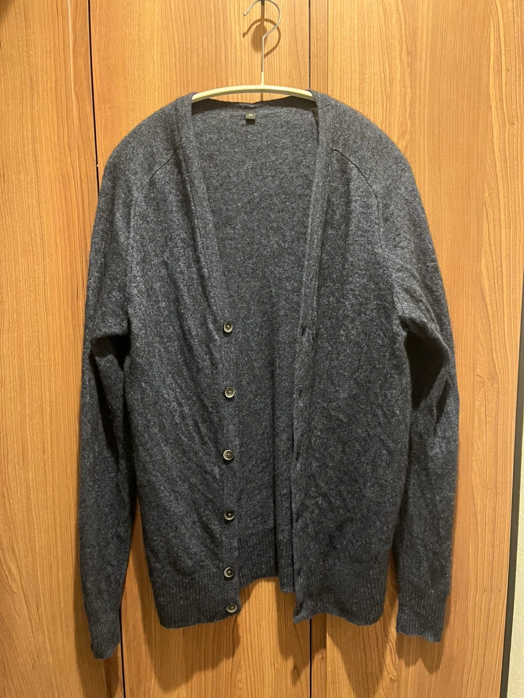 数年前に店頭で購入し、最近まで着用していましたが、断捨離のため、出品します。 無印良品のブルー系のカーディガンです。 ウール70%、毛(ヤク)30%で薄い素材ですが、着用すると非常に暖かく、冬向けとなります。 ビジネスカジュアルやプライベートなど様々な場面で着用できると思います。 多少の毛羽立ちはありますが、まだまだ着用できると思いますが、あくまで中古となりますので、ノンクレーム・ノンリターンでお願いします。 素人採寸のため誤差はあるかもしれませんが、サイズは下記の通りです。 【サイズ】 肩幅39cm 着丈68 cm 袖丈66cm 身幅40cm ※Mサイズですが、洗濯により少し縮んでしま ったためか着用時にタイトになっています (伸縮性はあり、私自身は170cmの痩せ型ですが着用はできます) こちらは引き取り限定となりますので、日程調整がスムーズな人から優先させていただきます。 よろしくお願いします。
