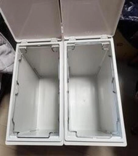 無印良品のゴミ箱2個セットです。 小・20ℓタイプ。 両方共に別売りの横型フタ・袋止め付き。 中古品です。 内外は多少の使用感があります。 底はキャスターをつけてなかったので傷がありますが割れ等ではありません。 袋止めは多少のサビがあります。 ゴミ箱としてはペットボトル等を入れていたので汚れ等は特にありませんが、気になる方はご遠慮ください。 商品仕様 本体:ポリプロピレン 袋止め:スチール 容量 約26L 重量 約1.05kg 外寸 約幅19×奥行41×37cm(底面 約17×奥行34cm) ※別売りの蓋を付けたときの高さ37.5cm ご希望の方はお気軽にご連絡ください。