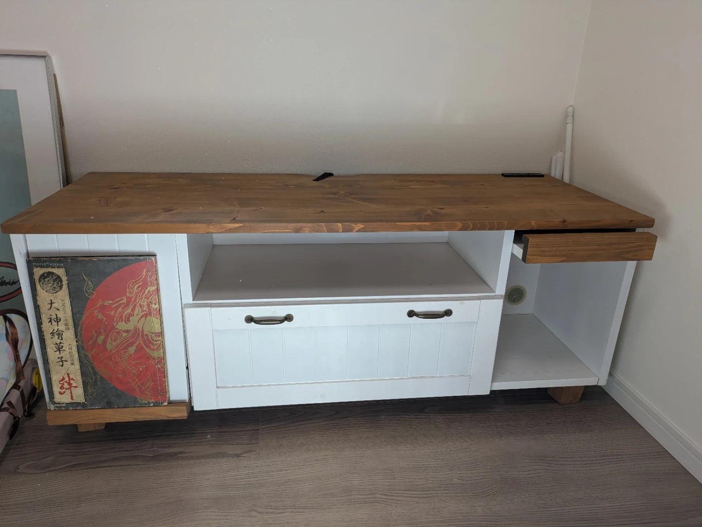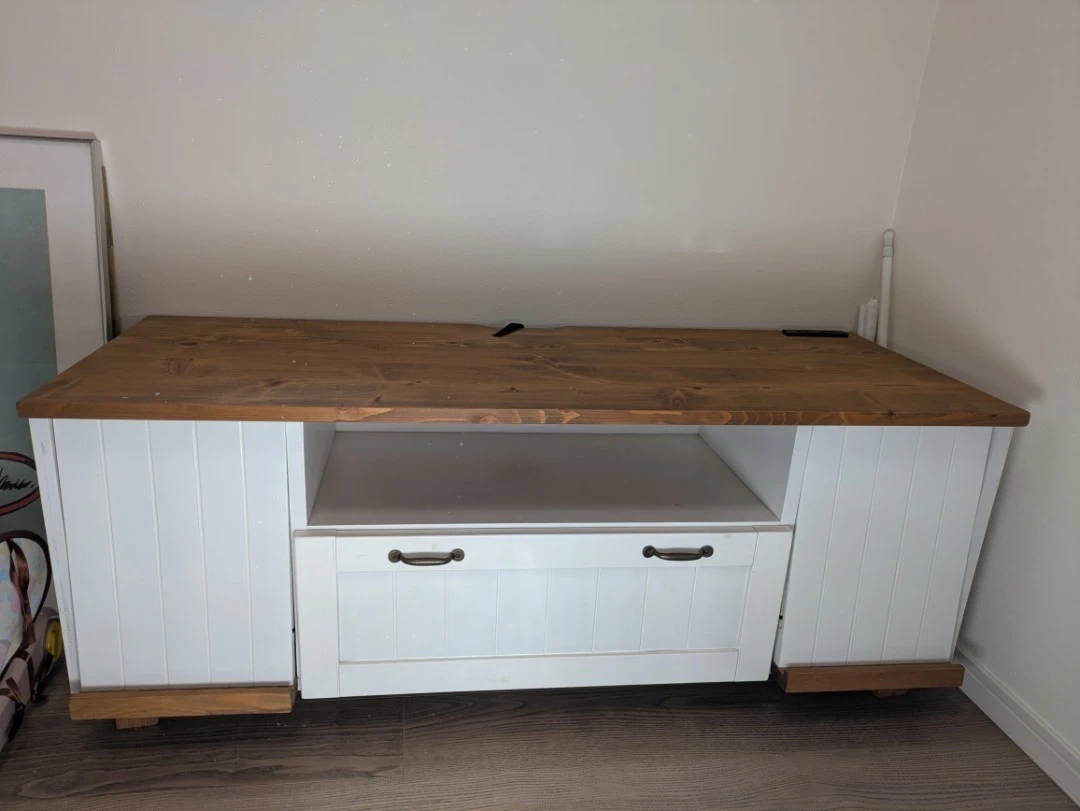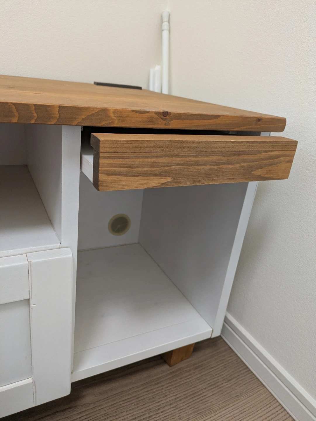 木製のテレビ台です。 12/6もしくは平日にお取り引き可能な方を優先します。 一度出品非表示にしておりましたが、先方都合で取引中止となってしまったため再出品しています。 一人暮らしや二人暮らしにピッタリなサイズ感です。 収納力もあり、コンセント穴や背面にコード収納スペース、テレビの固定紐など使いやすさも抜群。 ナチュラルなお部屋におすすめです。 ・色:白、茶色 ・状態:使用感あり、剥がれやキズあり、汚れはほとんどありません 剥がれている箇所は写真をご確認ください 受け渡し場所:自宅希望のため、チャットにて詳細お伝えします 中古品であることご了承ください。 大きめの家具のため引き取りに来れる方に限定します。(2名以上での引き取りが良いと思います。) 同内容でジモティーにも掲載しています。