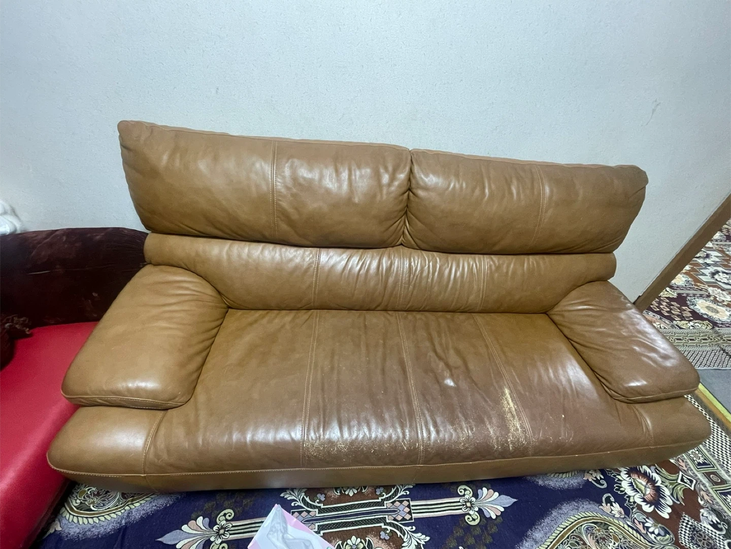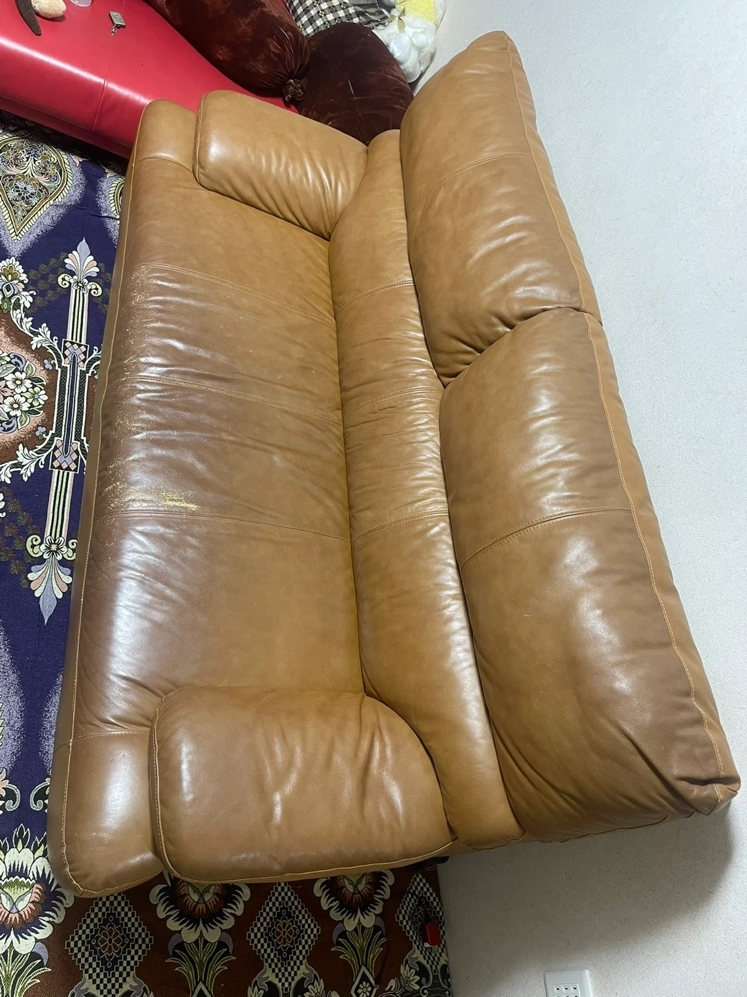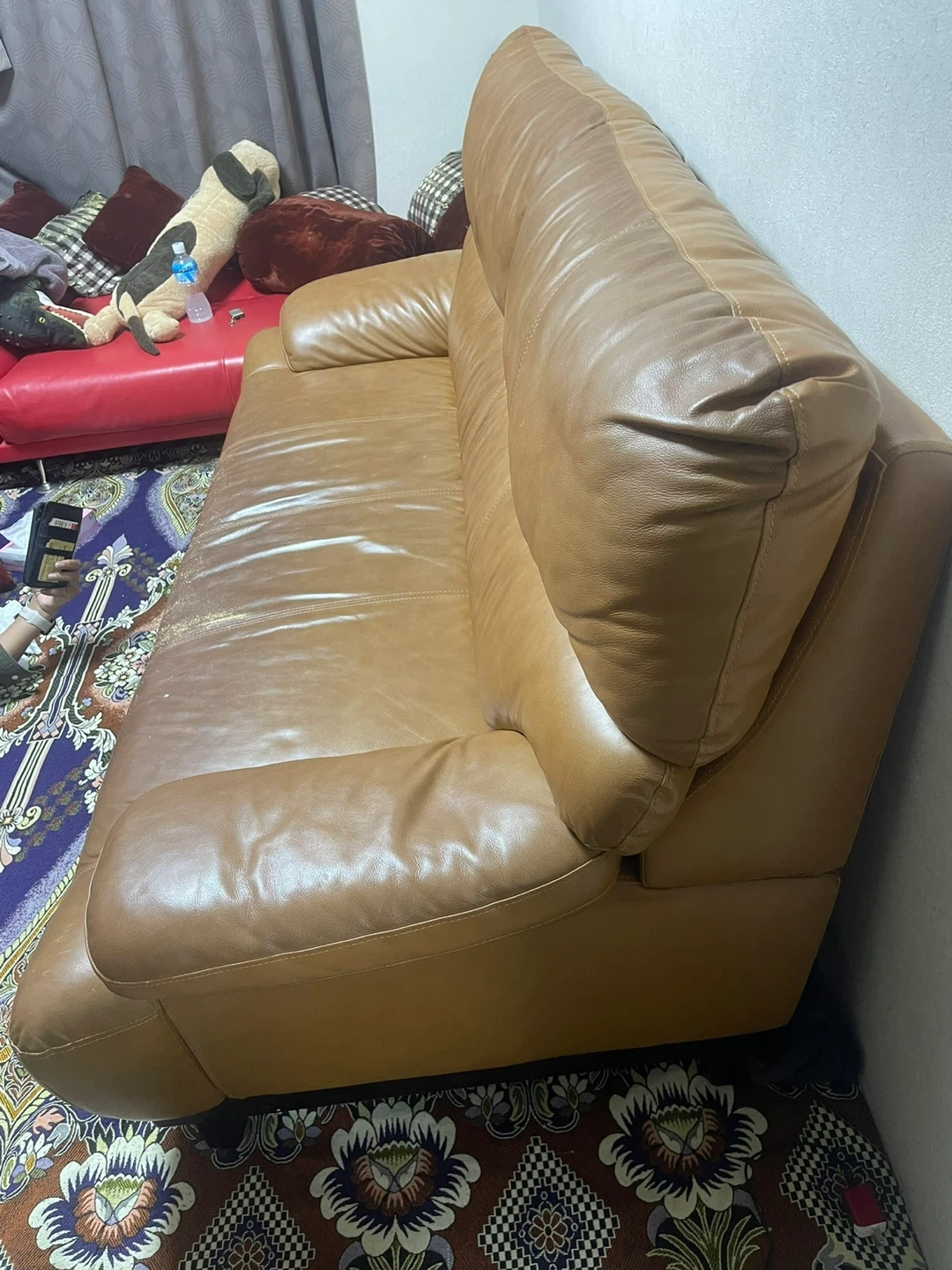 高級感のある牛革製のモジュール式ソファ(キャメル色/タン色)です。新しく買い換えたため出品いたします。 クッションがふかふかで座り心地が良く、本革ならではの使い込むほどに出る「味」を楽しめるソファです。モジュール式のため、お部屋のレイアウトに合わせて形を変えられます。 大切に使用してきましたが、中古品のため使用感や傷はございます。特に座面の一部(写真3枚目をご確認ください)に革が薄く剥がれている箇所がありますが、使用には全く問題なく、革製品らしい風合いとして捉えていただけると思います。全体的にはまだまだきれいな状態です。 喫煙者・ペットはおりません。