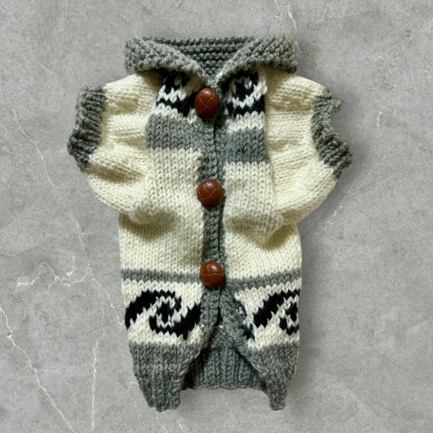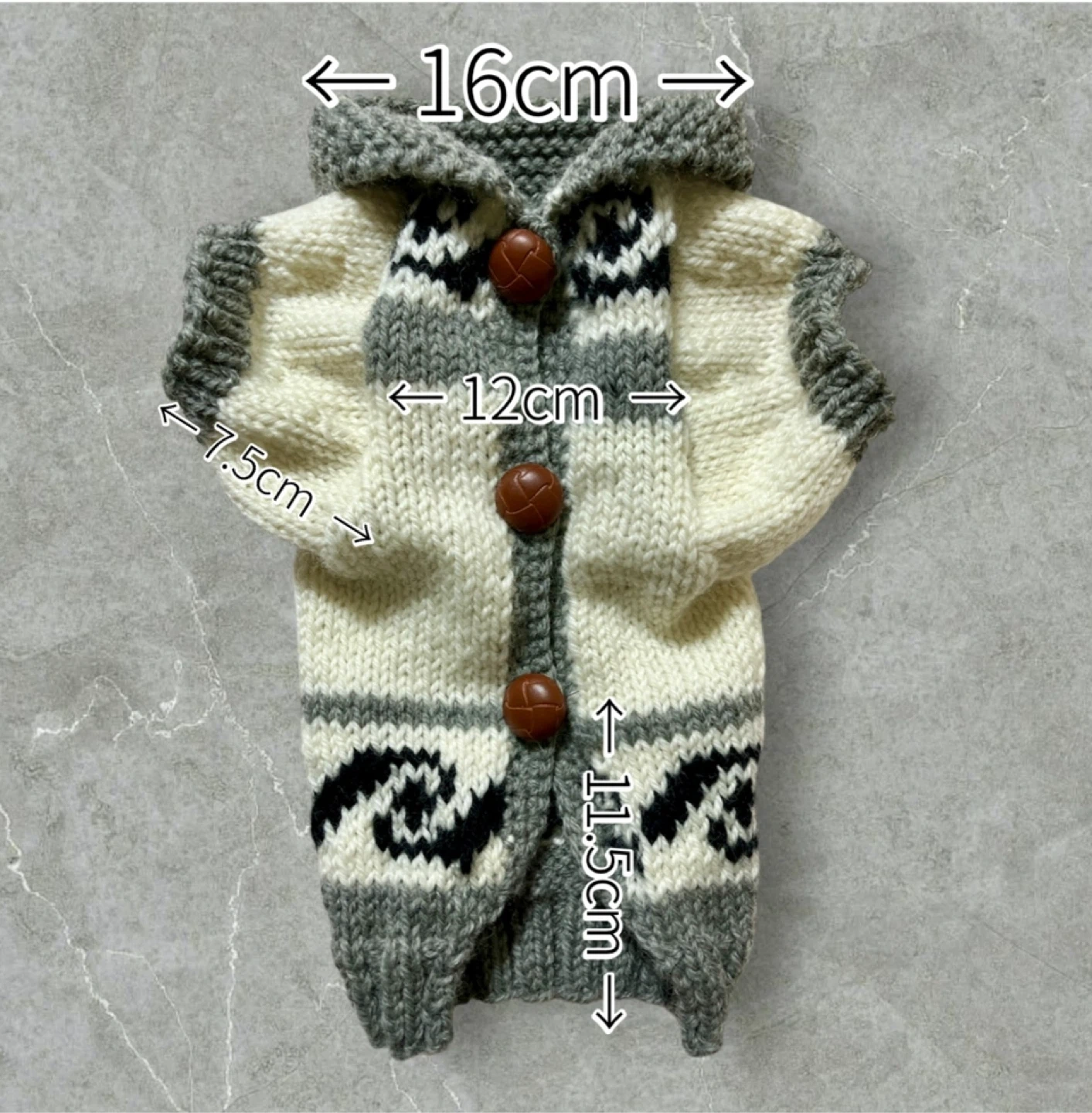 あたたかさ別媒体でも販売中のため、タイミングによりキャンセルする場合 があります。 ハンドメイドです。 犬さんのためのカウチンカーディガン 前開きボタンで留めるタイプ 袖は大きめに編み、着せやすくしました! 【素材】 セーター本体部分…ウール100% 【大きさ】(平置き) 丈…33cm 幅…18cm 詳細サイズは画像4を参照願います。 丈(ネックからお尻リブ網みまで) 幅(腕の穴すぐ下の幅) 被り口(お尻のリブ網み部分直線で) 不定期でハンドメイドの手編み作品を出品しています。 よろしければご覧ください #犬のファッション服 #お散歩ファッション