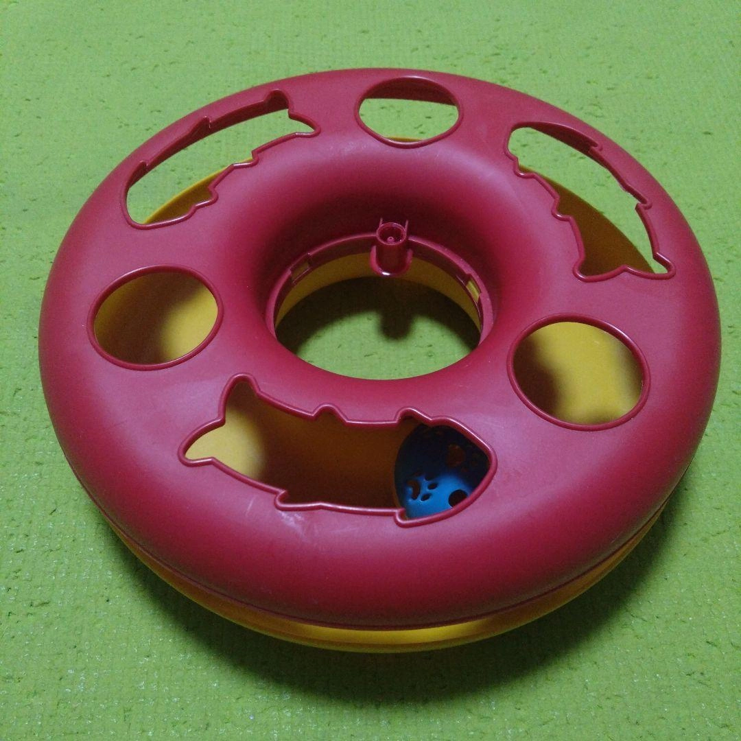 猫が遊ぶためのドーナツ型おもちゃです。内部にボールが入っています。 - 色: 赤と黄色 - 形状: ドーナツ型 - 特徴: ボールが内部にあり、猫が遊ぶための穴が開いています - 素材: プラスチック ご覧いただきありがとうございます。 ご希望の方はお気軽にご連絡ください。