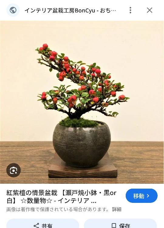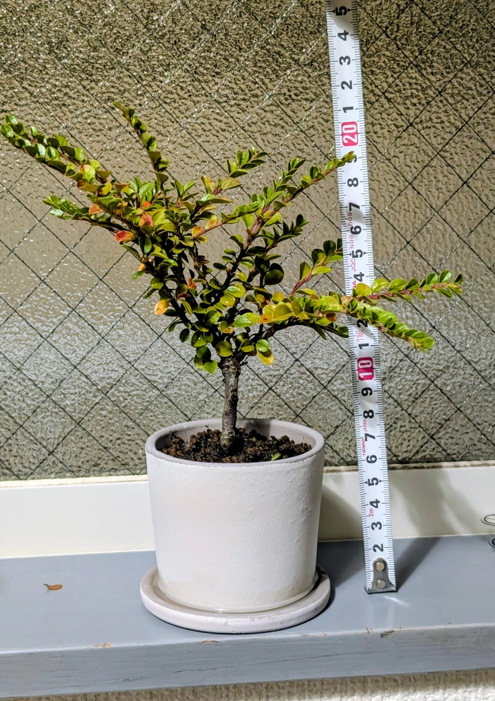 ベニシタンの盆栽です。 部屋の植栽が増えてしまったので出品します。 (二枚目は実をつけた時のイメージとして別サイトからお借りしました。)   ・高さ:約20cm ・鉢の色:白 ・状態:良好