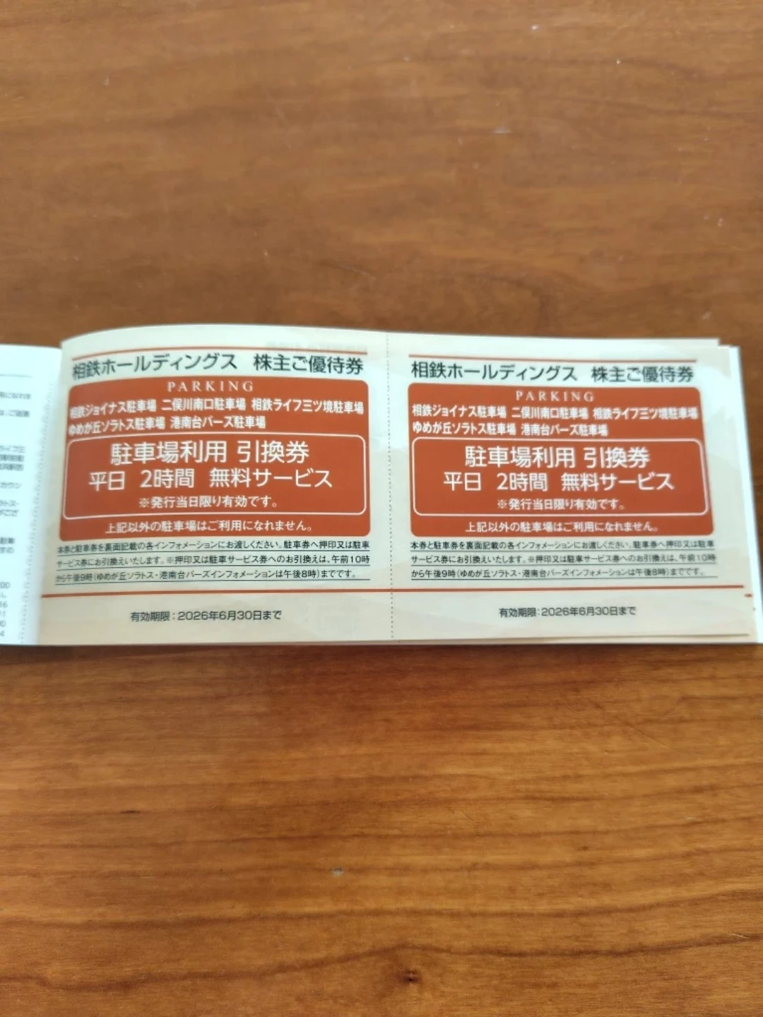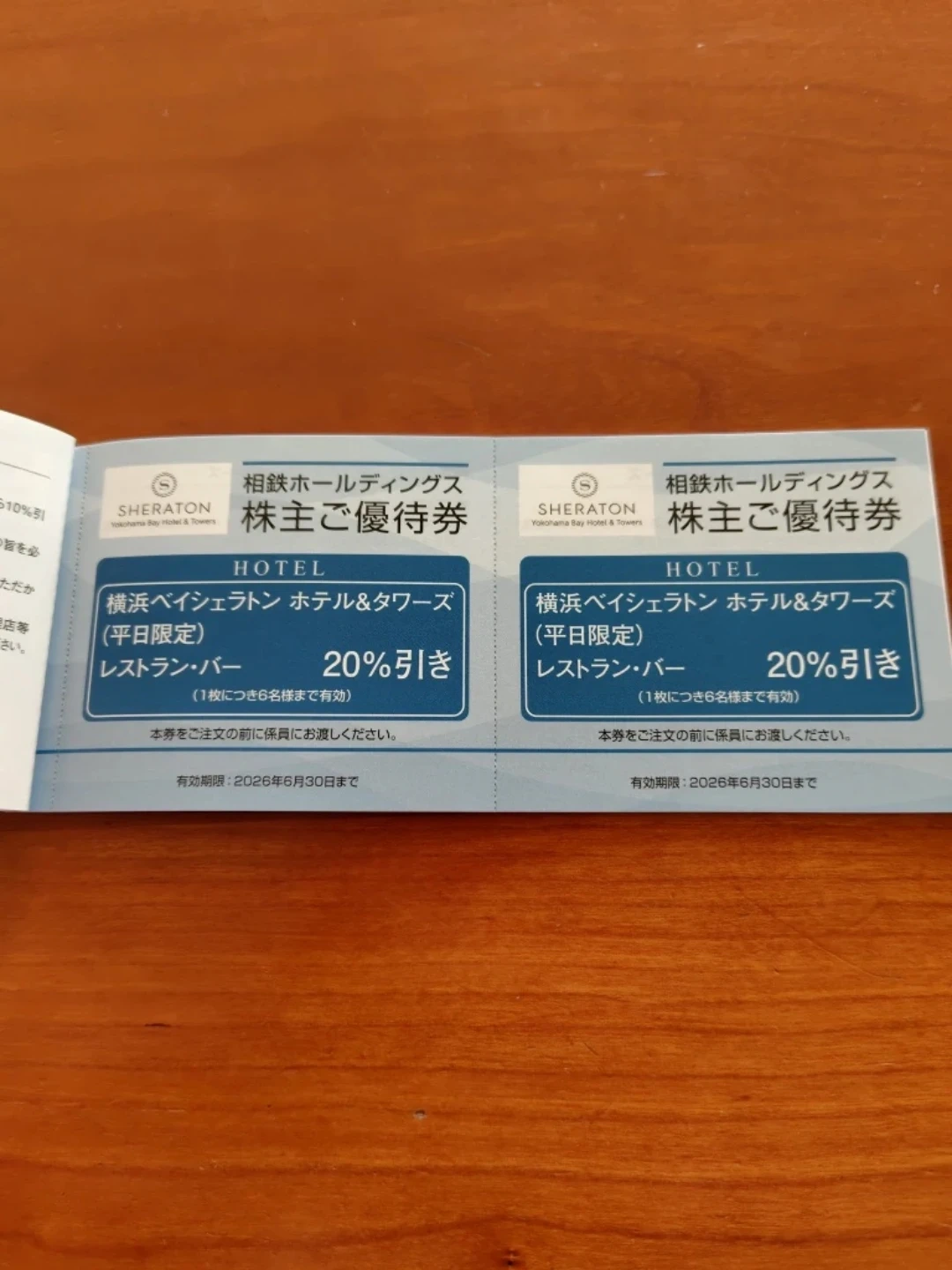 相鉄ホールディングスの株主優待券 冊子1冊 抜き取りなし 以下は一部の紹介です ・相鉄ローゼンお買い物優待券25枚 ・横浜ベイシェラトン ホテル&タワーズ レストラン・バー平日20%引き券 ・相鉄グループの駐車場 平日2時間無料サービス券 ・有効期限:2026年6月30日まで 詳細は、最新の相鉄線株主優待券の内容を別途ご確認ください。 受け渡し場所は、横浜駅相鉄線改札前で可能な日もございます。
