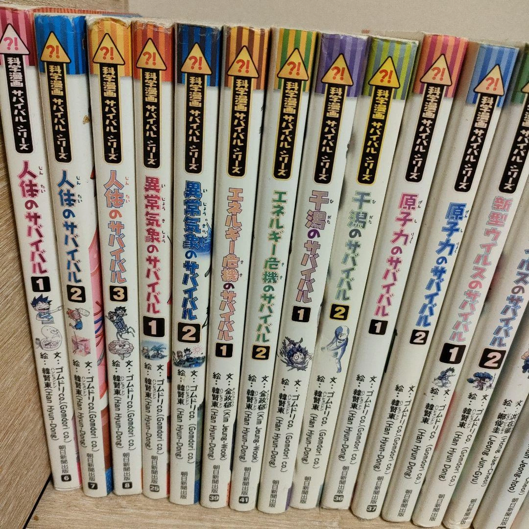 科学漫画サバイバルシリーズ23冊セットです。 定価: ¥1,320税込 日焼け、角の折れ、擦れ等、状態はさまざまです。 記載以外にも汚れ等あるかも知れませんが書き込みはありません。 子供がよく読んでいました。 現在地球で起こっている様々な現象を子どもが楽しく学ぶのにとても良い学習マンガです。 中古品の状態にご理解いただける方にご検討よろしくお願い致します。