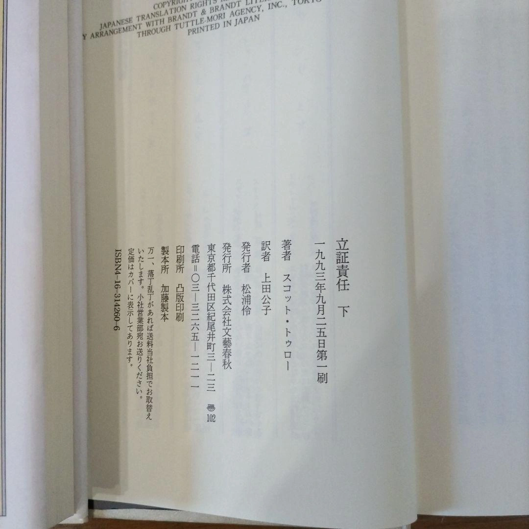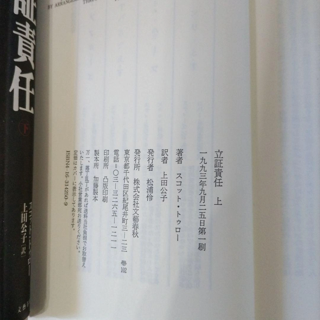 上・下セットです。 使用感は少ないです。 保存期間中に、天と地に埃による汚れが多少あります。 何かございましたら、購入前に何なりとお問い合わせください。 ご購入後の返品はお断りしております。 スコット・トゥローによる小説「立証責任」は、法廷ドラマを背景にした深い人間ドラマを描いています。翻訳者は日田谷宏で、日本での出版は1992年です。 本書は上下巻の構成で、上巻が「立証責任 上」として発行されています。ISBNは4-16-311426-0で、定価は2300円です。コレクションや読書に適しています。 法廷を舞台にした緊迫感あふれるストーリーを楽しむことができる本作は、文学や小説に興味がある方におすすめです。 - タイトル: 立証責任 上 - 著者: スコット・トゥロー - 翻訳者: 日田谷 宏 - ISBN: ISBN4-16-311426-0 - 価格: 2300円 - 出版年: 1992年 ご覧いただきありがとうございます。