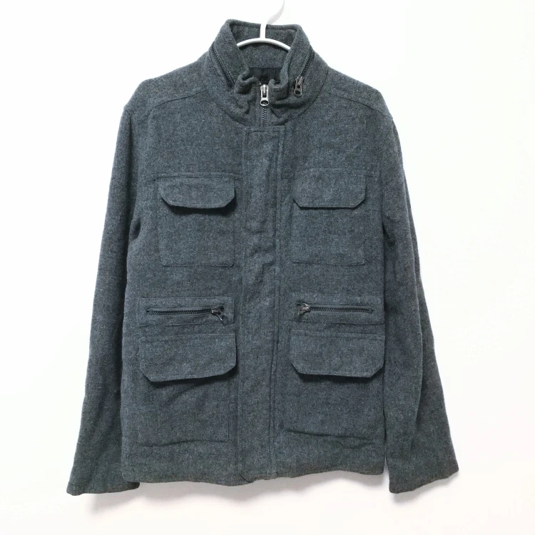 新大久保or大久保~新宿でのお渡しです(^-^) 【商品状態】数回着用       ※目立った汚れナシ 【参考価格】約19800円 【販売価格】約70%OFFの6000円 【内  容】メンズ コート 【数  量】1着 【サ イ ズ】M 【身  幅】51cm 【着  丈】46cm 【身  丈】69cm 【袖  丈】64cm 【素  材 ウール50% レーヨン50%        裏地 レーヨン100%       黒ストライプ 【仕  様】ファスナー開閉 ボタンあり       外胸ポケット2        外腰ポケット2       上部飾りファスナー       衿に飾りファスナー       袖口少し広がるファスナー付       内側左内ポケット1 【  色   】グレー 灰色 【製 造 国】中国 【ブランド】291295 LABO 【詳  細】知人の180cm男性モデル着用品