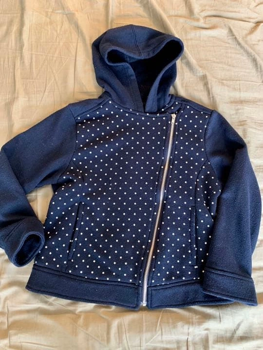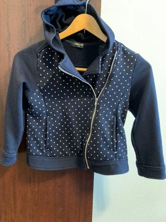 コムサイズムのトレーナー生地、紺色のジャケットです。家庭で丸洗いできます。 男の子にも女の子にも着せていましたので、中古品であることをご理解いただける方のみお願いいたします。 ご希望の方はお気軽にご連絡ください。