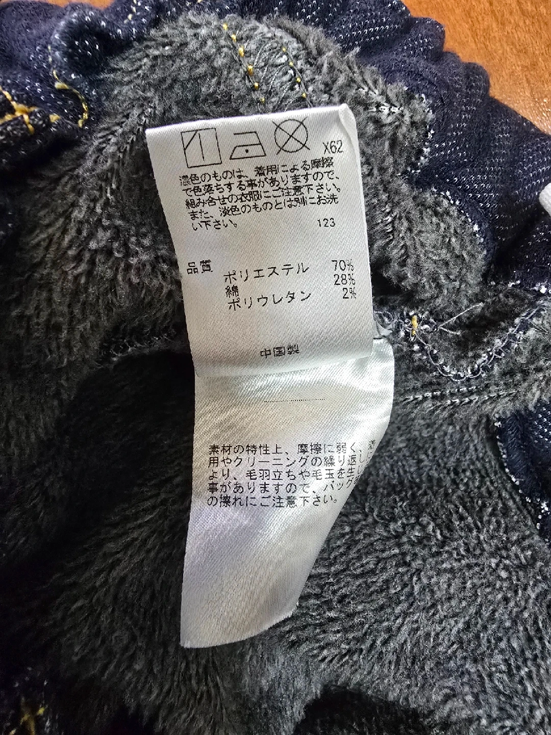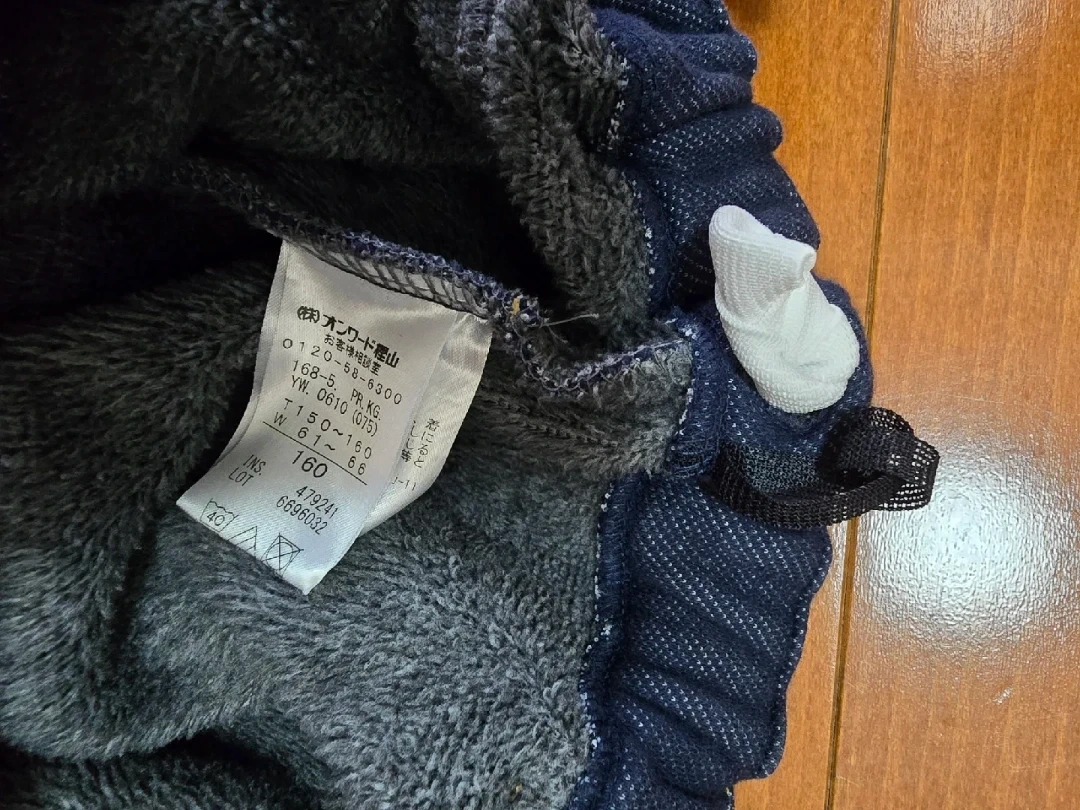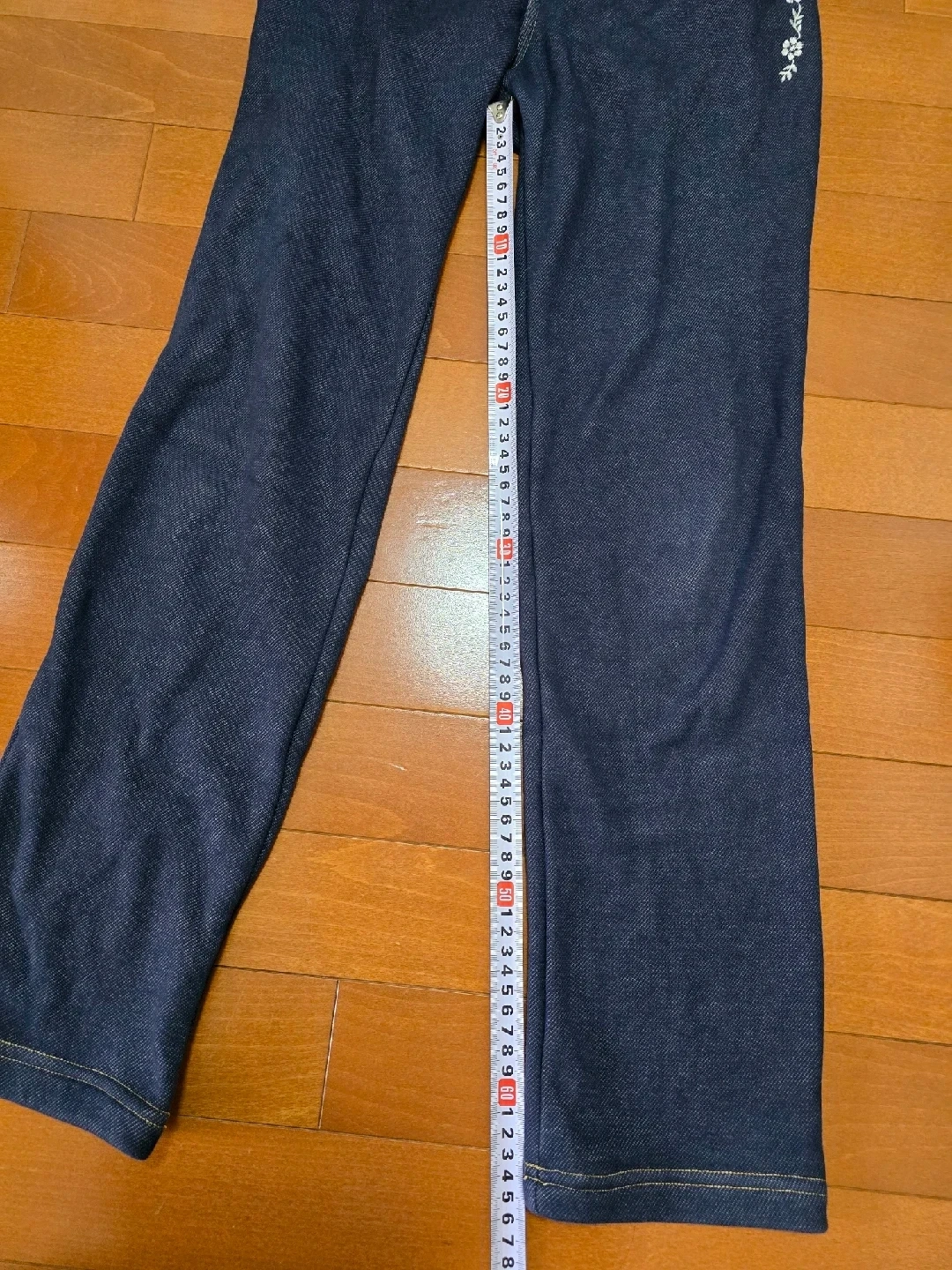KUMIKYOKU ジュニアパンツ ・サイズ:160(150~160cm) ・股下:約79cm ・色:デニム風 紺色 ・裏起毛 ・花柄の刺繍あり ポケット両側前、後ろ1つあり ・品質表示:ポリエステル70%、綿28%、ポリウレタン2% ・使用感はありますが、まだ着用できます ウエストゴム 緩くて最後の画像のように付属のゴムを結んで使っていました。 通常体型の方ならそのままがよいかと思いそのままにしています。そのため傷ありにしています。 中古品であることご了承ください