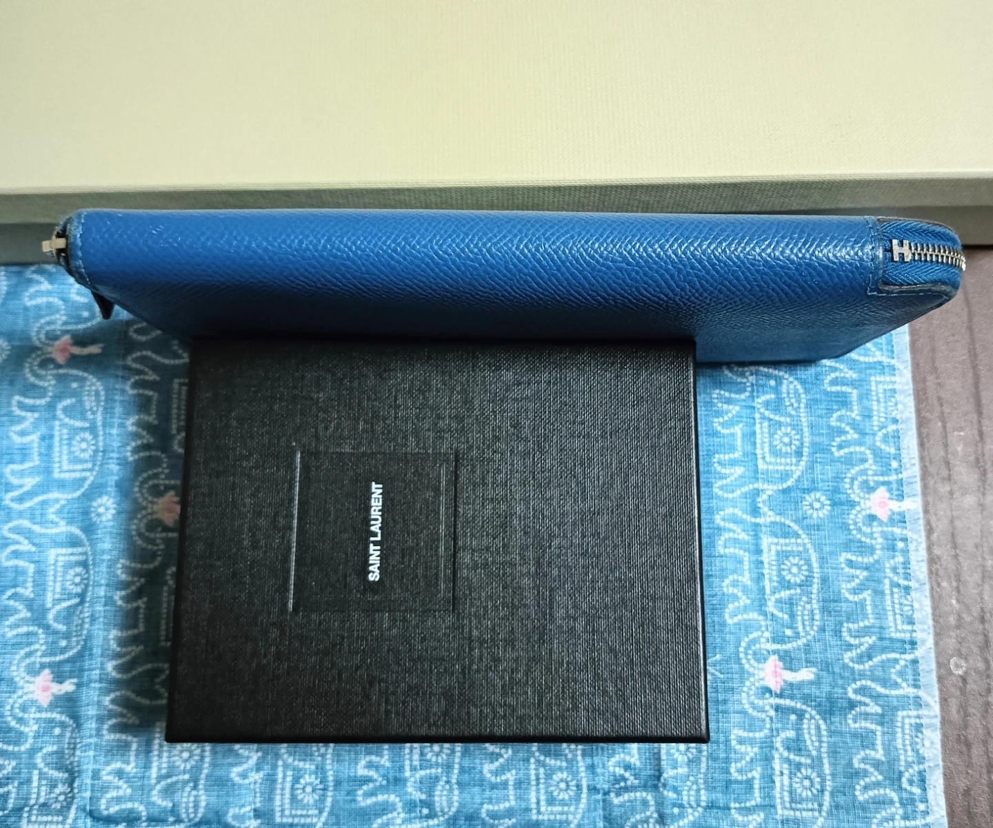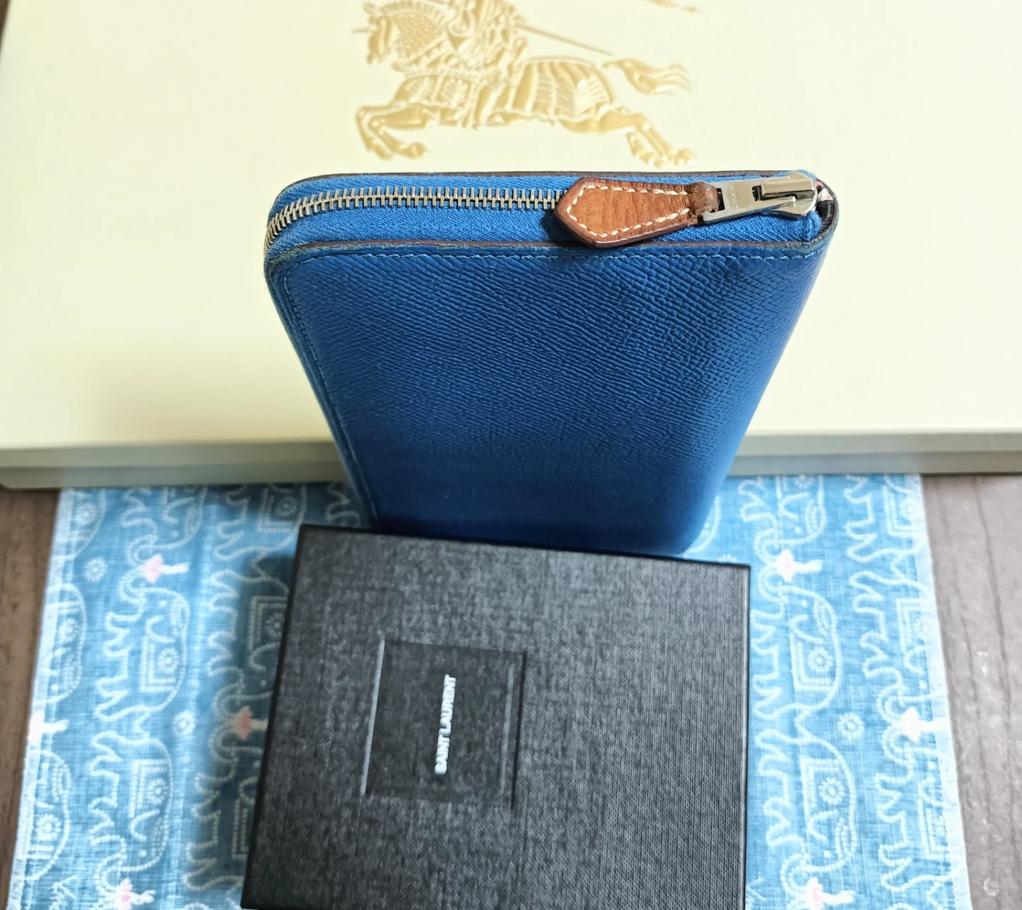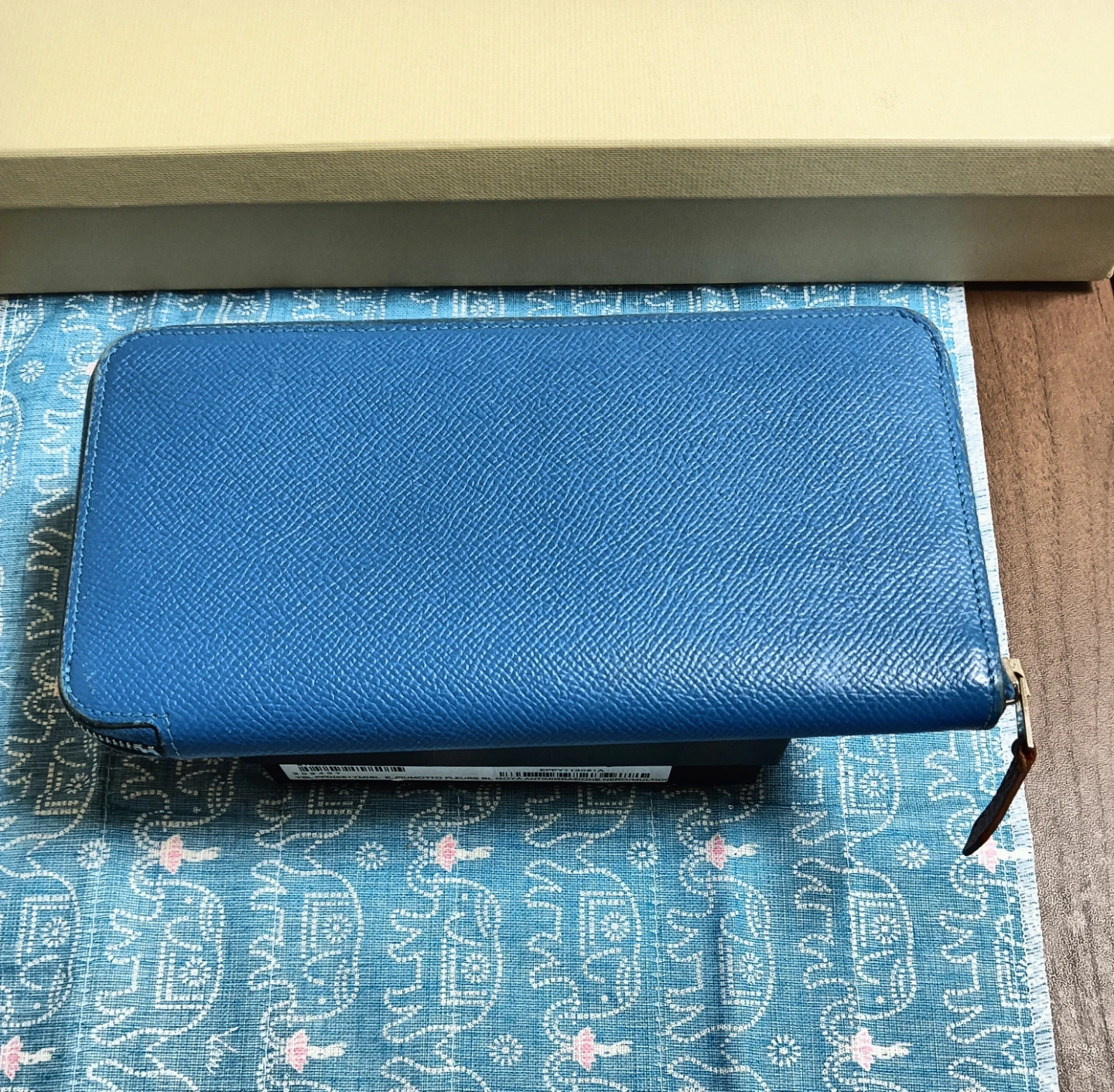 ★★ HERMES エルメスの人気シルクイン アザップ ラウンドジップ ヴォーエプソンレザー ブルー 長財布。 2016年製 刻印 X 工房刻印 AU 販売価格 約18万以上 ★★ ラウンドファスナーを開けるとHERMES定番カレシルクスカーフ生地が 鮮やかに広がる大人気なお財布ですね。 シルバー金具のブルーcolorです ★★ 写真の通り角スレ汚れ等もなく全体的にも比較的に綺麗な状態と思いますが、 使用品ですのでコイン入れに少しの汚れは感じます。 ★★ size 約20x11㎝ color ブルー こちらは現物のみとなります。