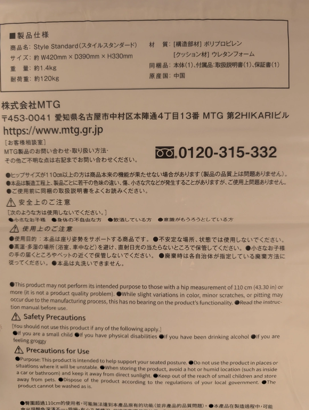 あたたかさMTG Style Standard ボディメイクシート スタンダード 姿勢矯正 骨盤矯正 使用する機会がほとんどないため手放すことにします、数回使用しましたが美品かと思います! 状態等画像にてご確認下さい。 付属品揃っていますが開封済みのため中古品にご理解ある方に。 2025年6月末まで保証期間がありますので大変お得です! 仕様:生地なし カラー:ウォームグレー(ベージュのような色味です) 型番: YS-AQ14 サイズ:W420×D390×H330 重量: 約1.4kg 耐荷重:約120㎏ ボディメイクシートスタイル Body Make Seat Style MTG正規品